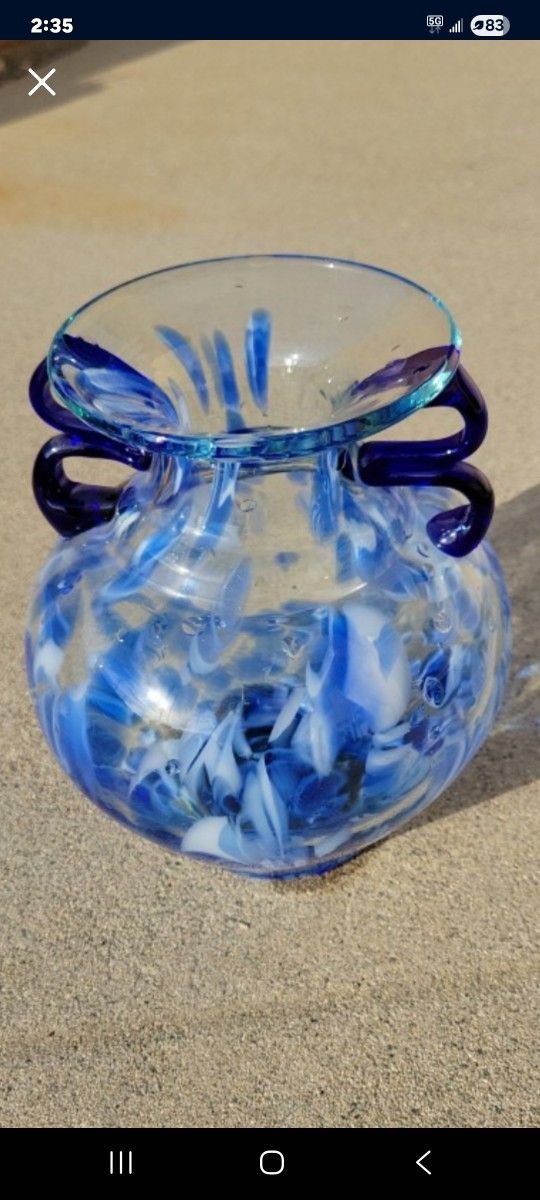 9 Inch Hand Blown Vase With Cobalt Blue Handles One Of A Kind There Are Some Similar But All Of Them Are Different Because They're Hand Blown
