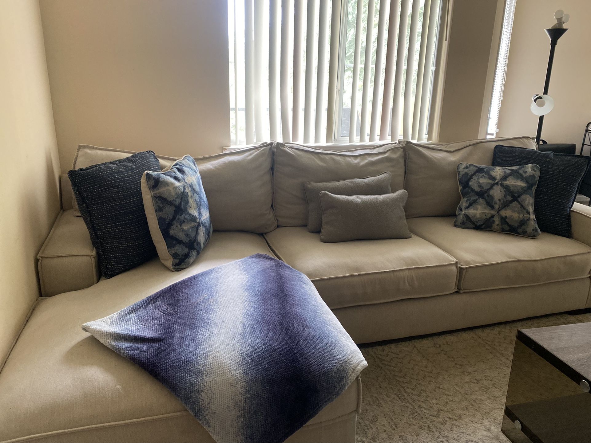 Like new condition. I bought the couches 1 year ago. No rips no tears, no stains