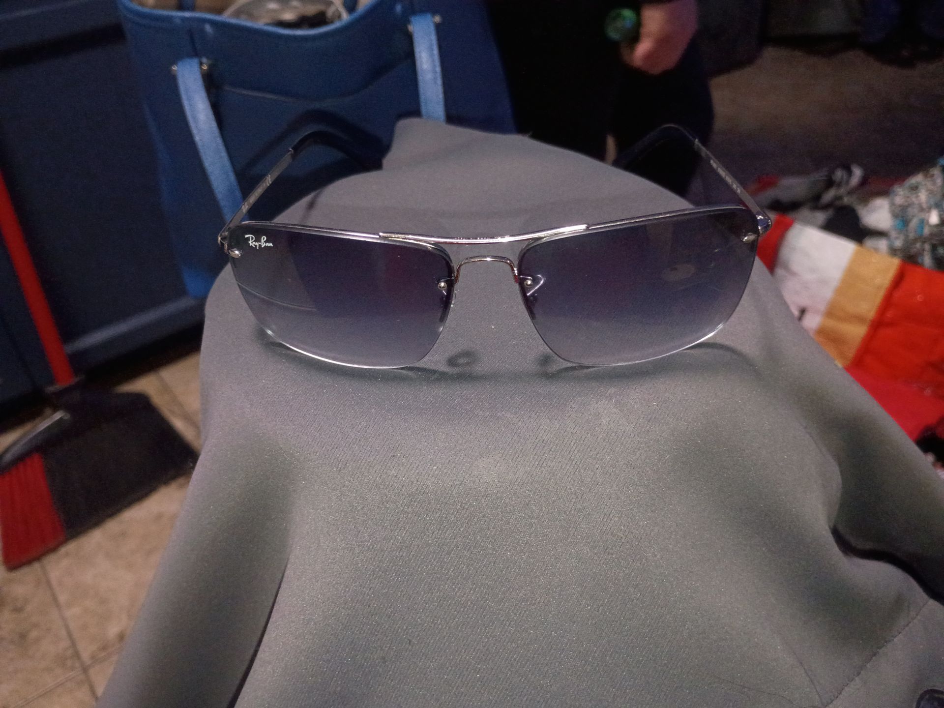 Ray-Ban RB3(contact info removed)/0S is a unisexrectangular sunglass model featuring a silver metal frame and blue gradient mirror lenses. It is part of the Active Lifestyle series with a 61mm lens width, designed for a modern, semi-rimless look. These non-polarized sunglasses offer 100% UV protection and are characterized by their lightweight, sleek design. Ray-Ban Ray-Ban +4 Key Details for RB3(contact info removed)/0S: Frame Color: Silver Lens Color: Blue Gradient Mirror Frame Material: Metal Shape: Rectangular / Semi-Rimless Size: 61mm lens width, 15mm bridge, 140mm temples