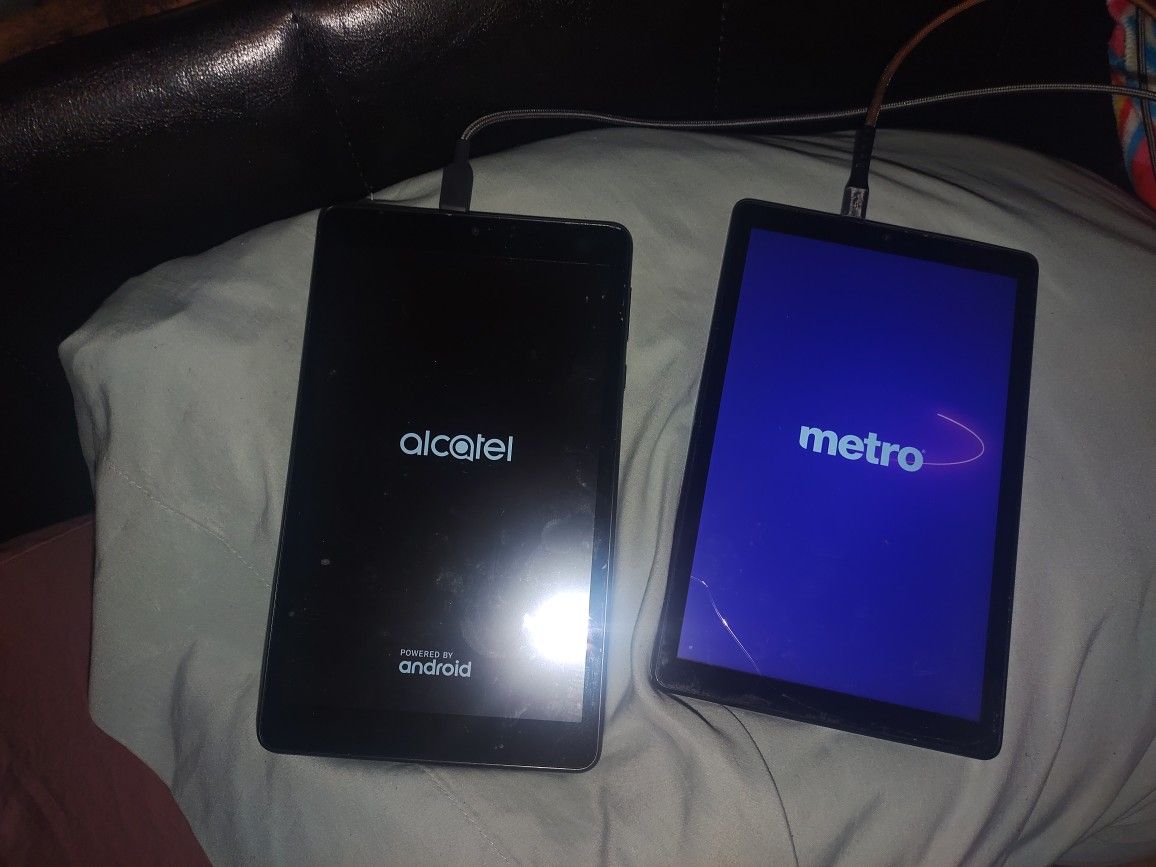 Alcatel Joy tab 2 and a TCL tablet......they are both for metro PCs ...the TCL is screen locked but the joy tab 2 is ready to go.... Weighing just under 11 ounces, the JOY TAB 2 is light to transport and easy to hold. Durable Asahi glass protects against damage and scratches from daily use, while the reversible USB-C connector plugs in easily whenever you need a quick charge Both for 50