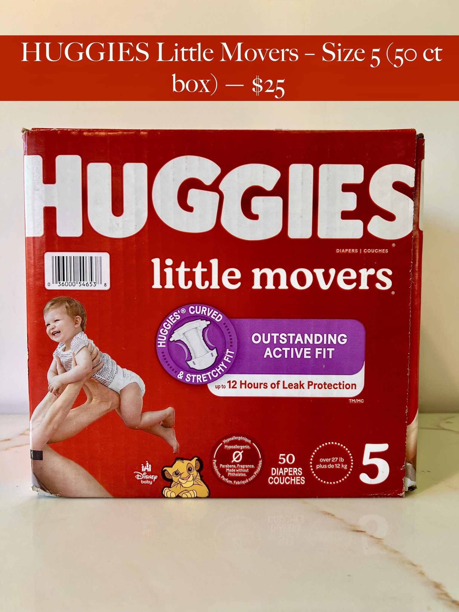 Huggies Little Movers Size 5 (50 ct) – $25