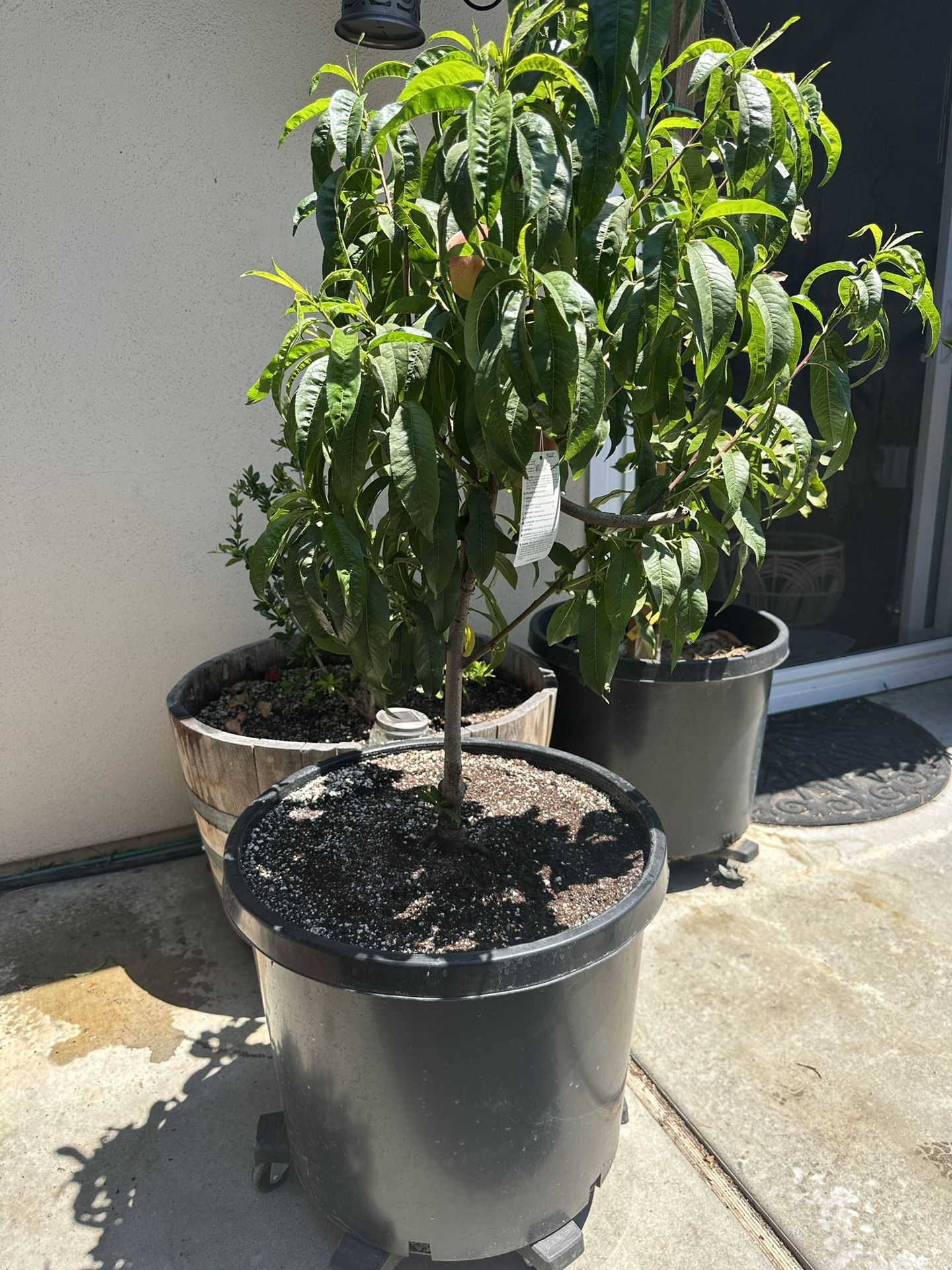 If you see it listed, yes it’s still available. The tree has 2 peaches left as we’ve been eating them! :) This is a RARE beautiful mature ultra dwarf white peach tree in a 20 gallon pot with fox farms ocean forest soil. This tree produces very sweet fruit! You can leave it in a pot forever and it will remain a very small patio tree or you can plant it in ground and it will only reach a height of 5 feet.