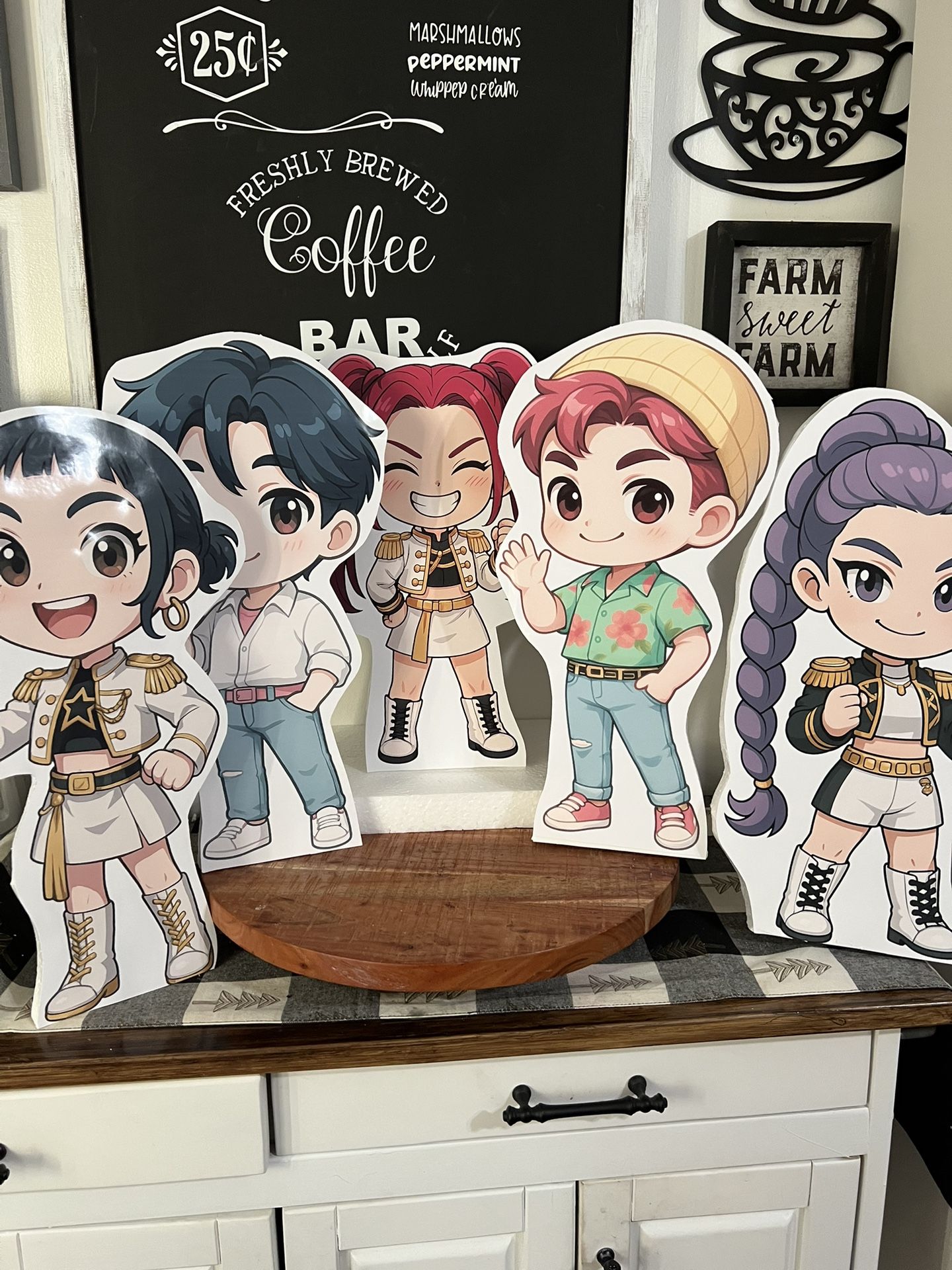 $10 each all 5 for $45 19 inches tall Glossy photo paper on foam board Comes with stand