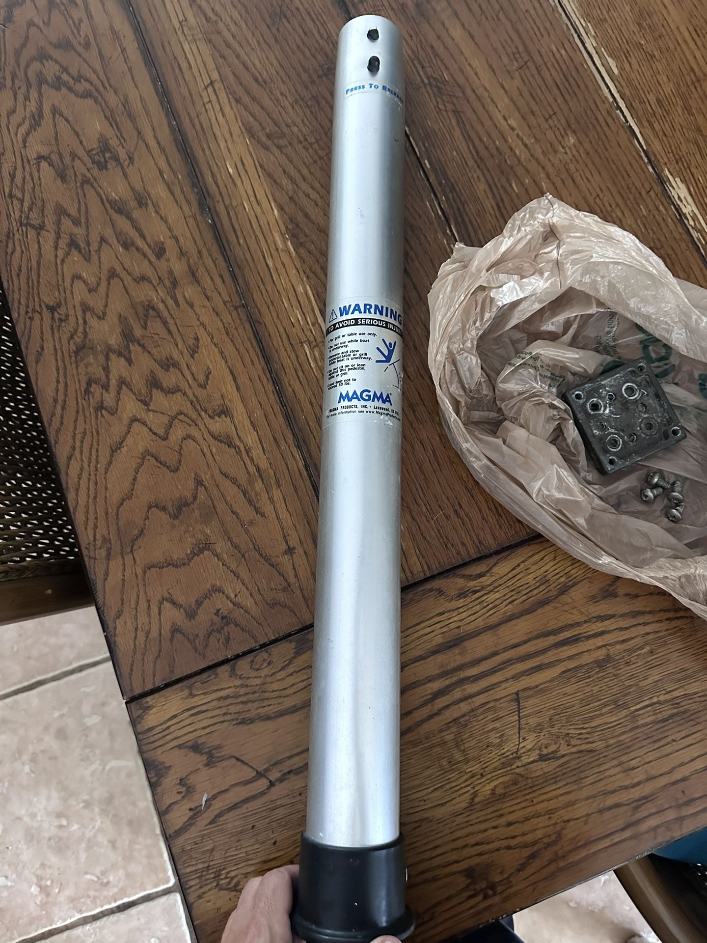 Post mount for a rectangular Magma boat grill please look at the pictures. On the parts page the part circled in red is NOT included. The part will need to be purchased directly from Magma. Part number is 10-187