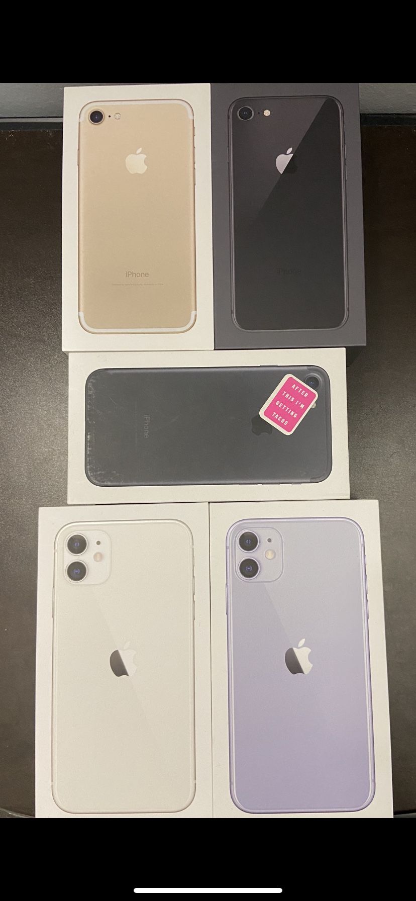 5 iPhones empty boxes 2 IPHONE 7 1 iPhone 8 2 IPHONE 11