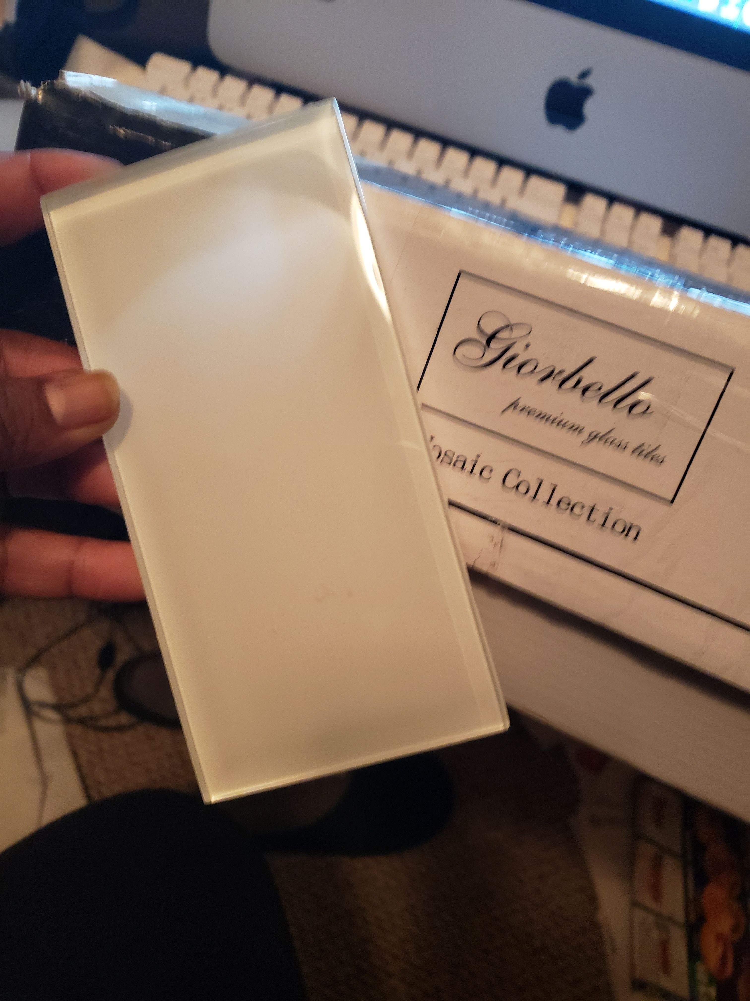 Ordered too much Retail 65.49 Brand NEW never used 5.5 square feet, 44 pieces per case. Case weight is 22.5 lbs. Grade 1, first-quality glass tile for wall use. 3 in. width x 6 in. length x 5/16 in. thick (8mm) Glossy finish with a high sheen and slight variation in tone. Frost resistant for indoor or outdoor applications; use a latex-modified thinset for acceptable bond strength. Glass brings a sleek look to the traditional subway tile design. For decades subway tile has been popular for both kitchen backsplashes and in bathrooms. Whether tiling a bath surround, a backsplash or an entire wall, glass subway tile will offer both a timeless and stylish design to your project. Giorbello recommends glass subway tiles not only because of their trendy design, but also because the colors offered by glass tiles are more vibrant than ceramic tiles. Glass subway tile is easy to work with and doesn't require complex measurements and cuts. Due to the nature of glass tiles, when the tile is installed faint lines can be visible when viewing at a downward angle; this is representative of glass tile and if this is not a desired characteristic, we recommend a material other than glass.