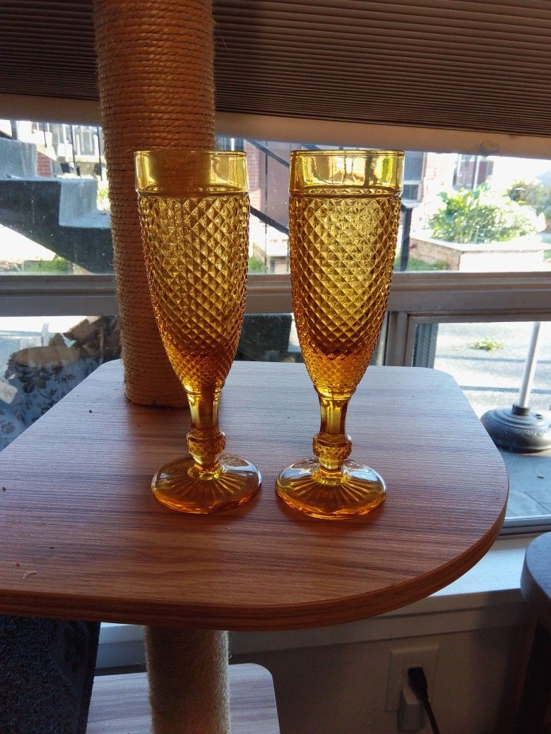 Vintage Amber Champagne Flutes