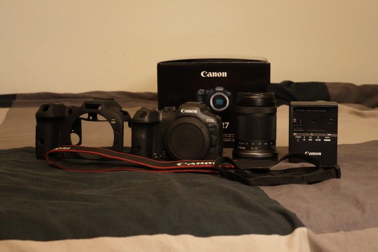 Selling my professional-grade Canon R7 kit. Purchased brand new on December 31st. I'm only selling because I’ve decided to upgrade to a full-frame R6 MK II. Shutter Count: < 50 (Used exclusively in Electronic Shutter mode). Physical Condition: Pristine. No scratches, marks, or mount/port wear. Protection: Silicone body skin and screen protector applied before first use. Included: - Canon EOS R7 Body + 1-year warranty - Canon RF 18-150mm F3.5-6.3 Lens - Silicone R7 body case + screen protector - Official Canon LP-E6NH battery + charger - EOS R7 Neck Strap - Original R7 box + receipt EOS R7 Specs: - 32.5MP APS-C sensor - 5-Axis in-body stabilization - RF Mount - Durable magnesium alloy construction with weather sealing - Dual UHS-II SD Card slots - Amazing screen and electronic viewfinder