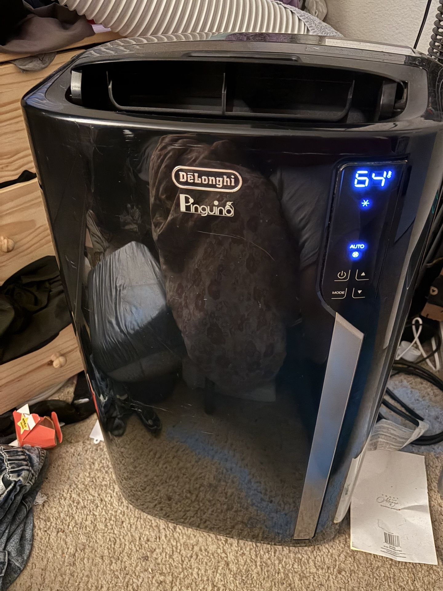 Read** AC and heater. Dehumidifier. Comes with hose. No remote. Cools great, but the up and down buttons don’t work anymore, it’s stuck on the coldest setting.