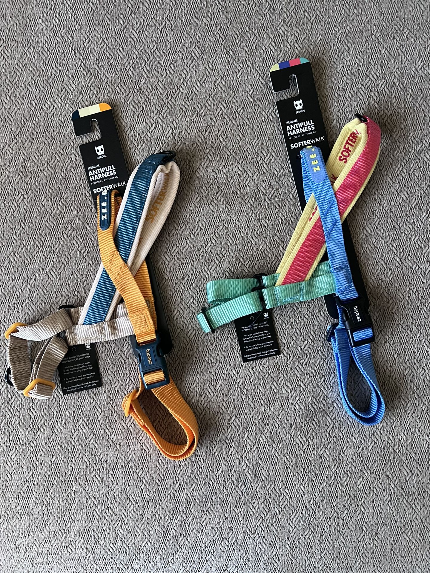 Brand new dog harnesses. Two available - $20 each. Firm. Brand: Zeedog - Size: Medium