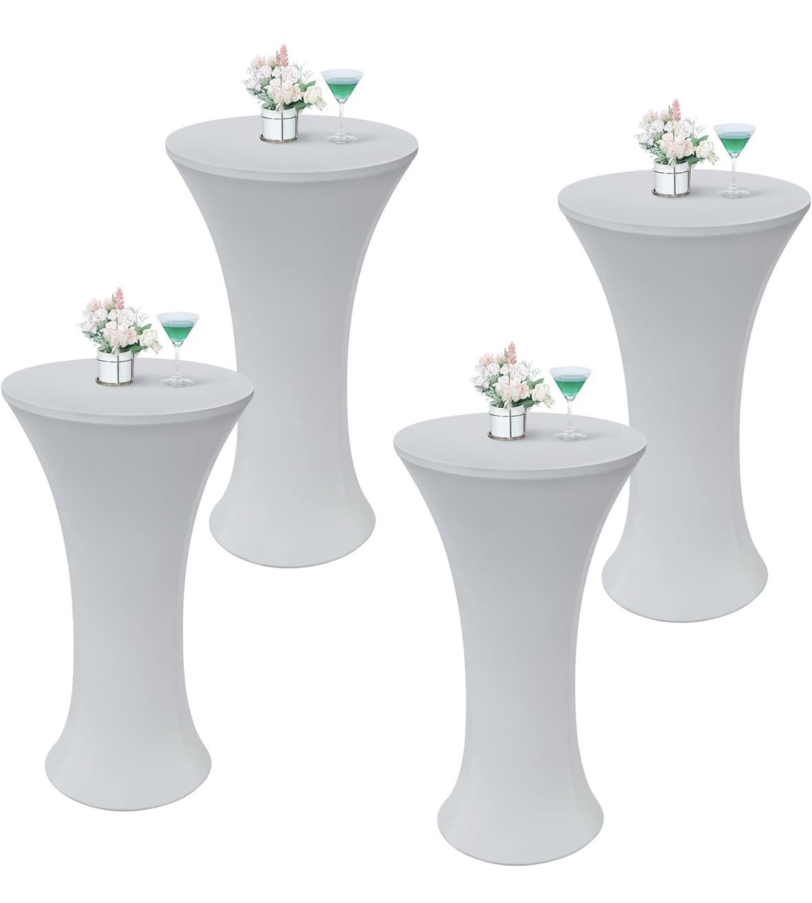 4PCS 24x43 Inch Silver Round Cocktail Tablecloth Fitted Highboy Stretch Cocktail Table Cover for Banquet Bar Party Pub Wedding Indoor Outdoor.