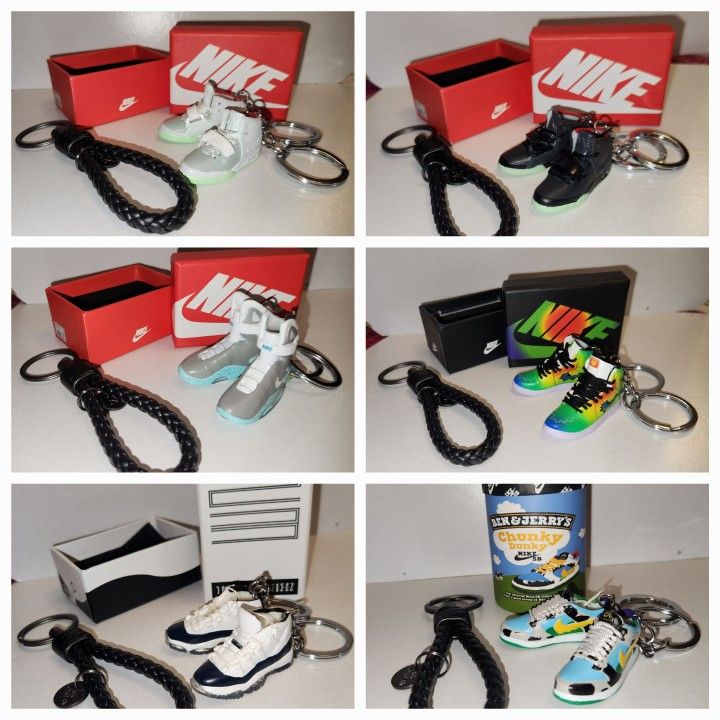 Sneaker keychain sets, each set comes with a pair of sneakers, the miniature sneaker box and it own polyester lanyard for easy carrying. Asking price for each set is $20