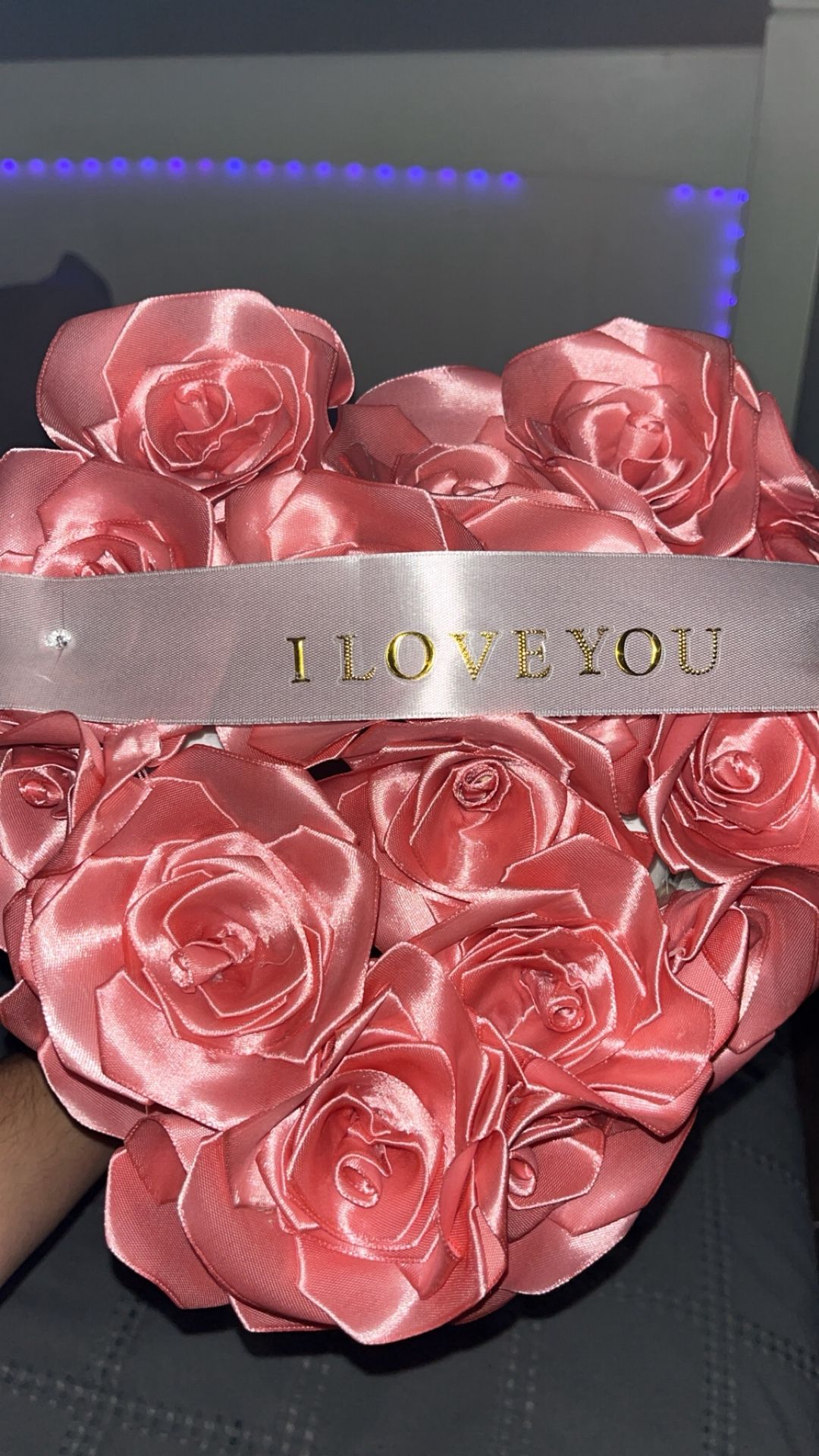 This is a eternal lasting “fake” flowers with a banner saying i love you