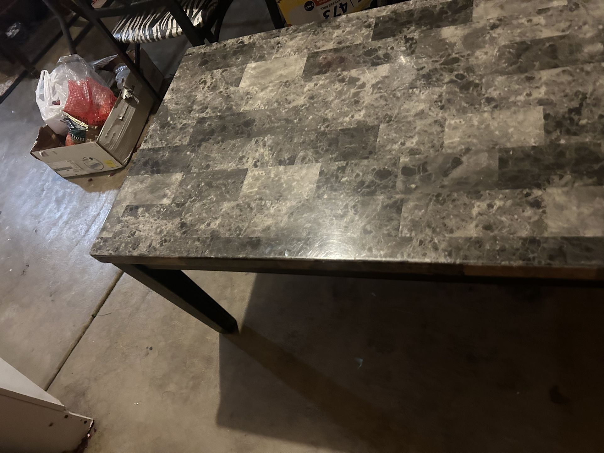 Nice coffee table with a modern marble-style top and sturdy black legs. Perfect for a living room, office, or small space. Clean design that matches many styles of furniture. Details: • Marble-look tabletop (gray/black pattern) • Strong black legs • Good condition • Great as a coffee table or accent table 📍 Pickup only Message me if interested!