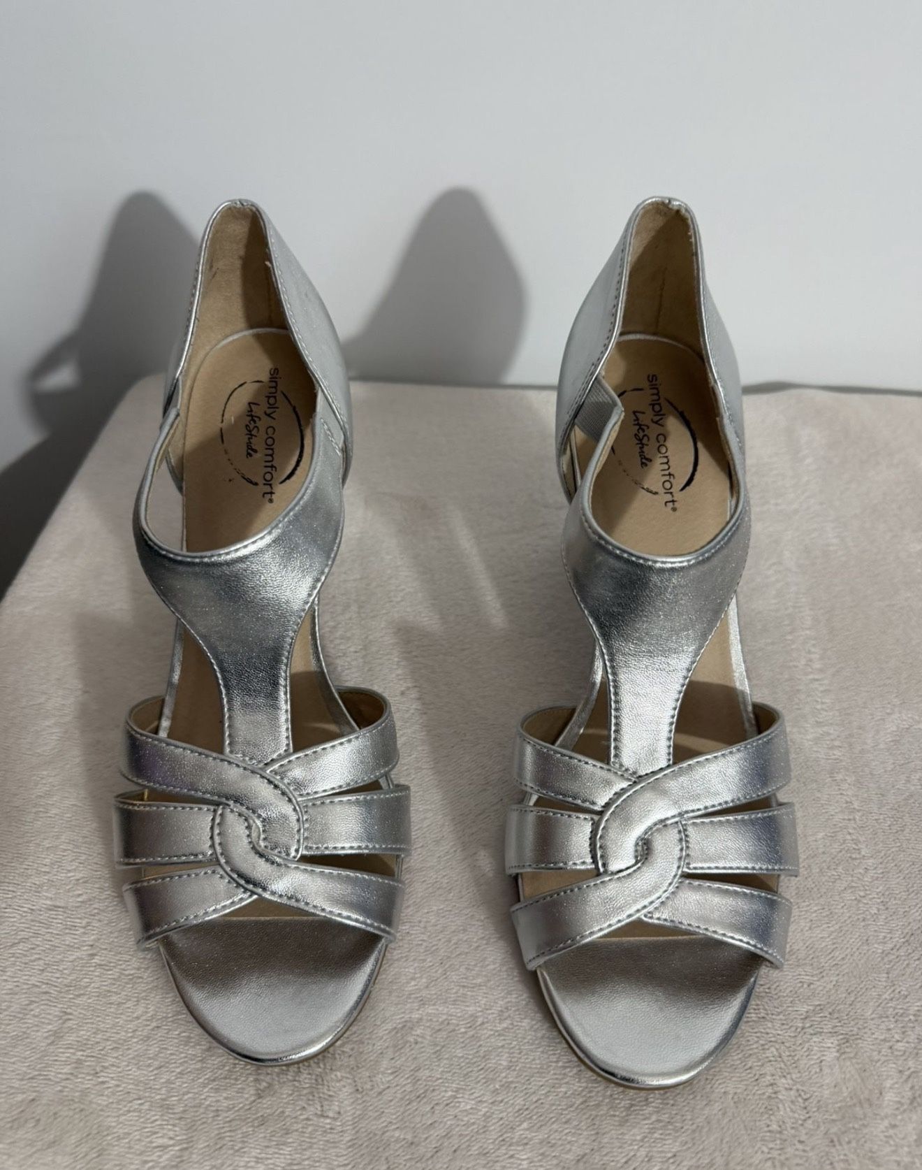 Platinum Silver Strappy Heels Sz 8.5 M