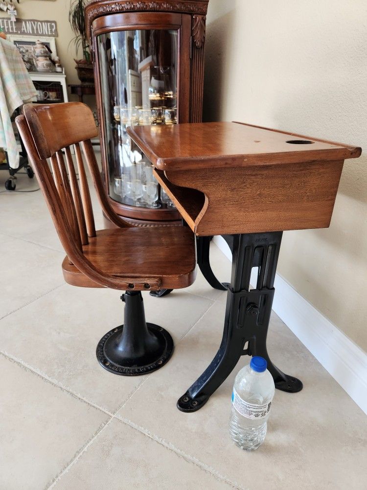 Antique Small Child's Student Desk And Chair Set!