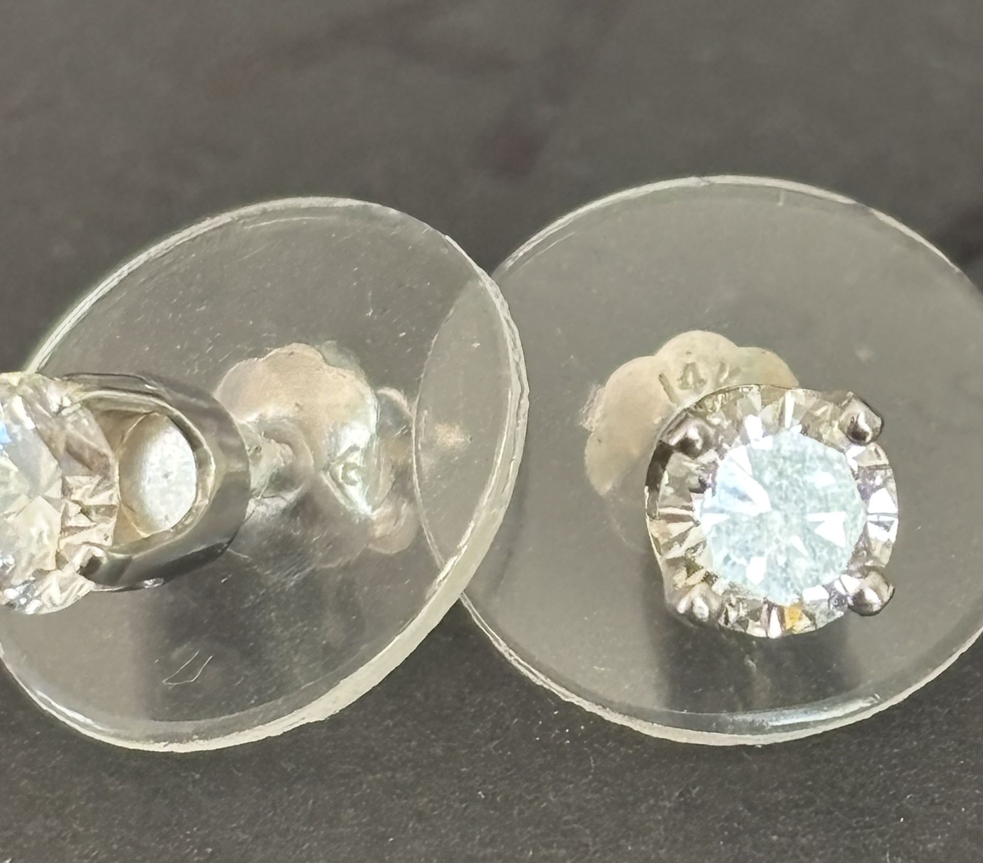 14k white gold screw back earrings. 3/4 diamond carat weight. Eye clean diamonds