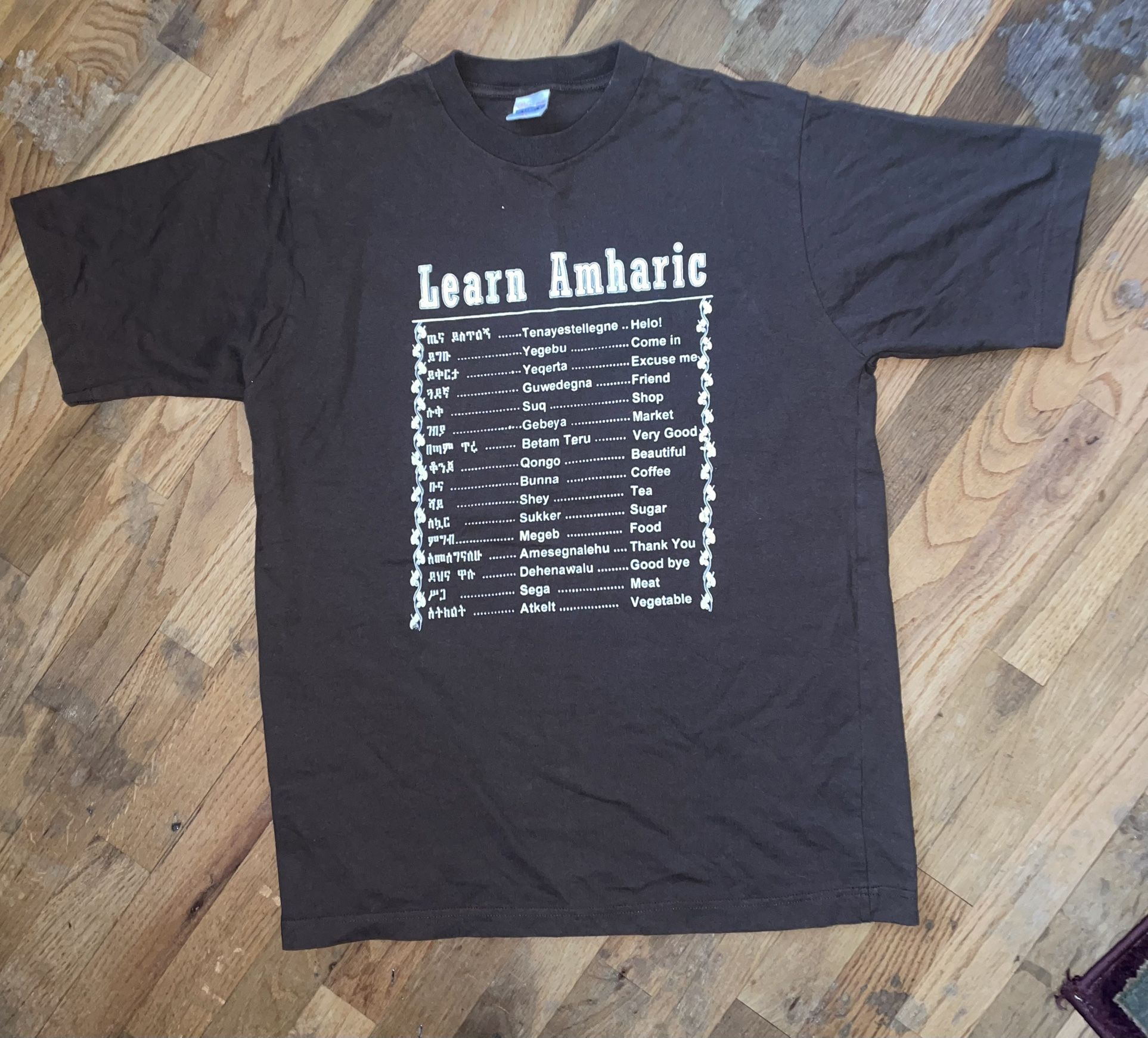 "Learn Amharic" graphic t-shirt Amharic words and their English translation