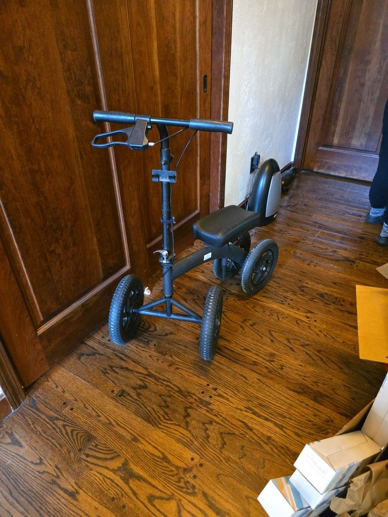 🛴 Off-Road All-Terrain Knee Scooter – Perfect for Outdoors & Winter (350 lb Capacity) Get back on the trail, driveway, and dirt paths while you heal! Selling a heavy-duty, off-road all-terrain knee scooter designed for stability, comfort, and outdoor adventure. This is not your standard medical scooter—it’s built for grass, gravel, dirt, snow, and uneven terrain thanks to 4 large air-filled tires + rugged frame. 💪 Key Features: All-terrain/off-road tires (4 large, air-filled wheels for shock absorption + traction) 350 lb weight capacity (see photo for label) Comfortable padded knee platform + adjustable height Steering handlebars with brake system for control on slopes Sturdy metal frame built for outdoor conditions Ideal for: trail access, camping, gravel paths, neighborhood walks, and paved driveways Great for Colorado weather and winter mobility 👍 Condition: Used but solid and fully functional Normal wear from outdoor use Tires hold air, brake works, knee pad in great shape Ready to roll and support your recovery 📏 Specs (approx): Max weight: 350 lbs Tires: 4 all-terrain, air-filled Use: All-terrain, off-road capable 💚 Why this one? If you want freedom beyond indoor hallways—this is the scooter. It handles what others can’t. Perfect for active humans who refuse to pause life while healing. 💰 Price: $95 (or best offer) Arvada, CO