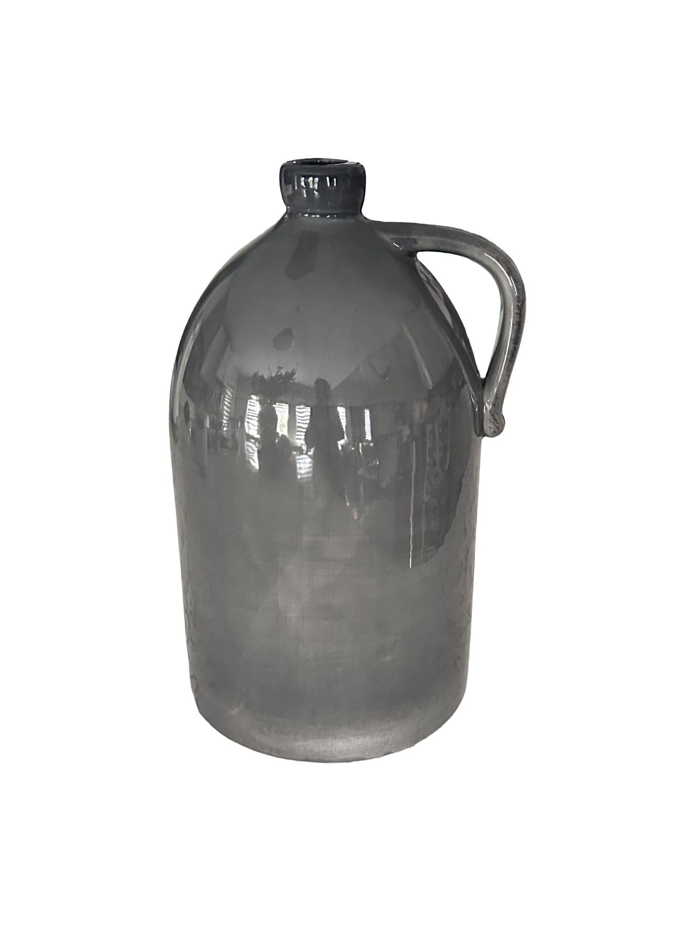 New, Crate & Barrel Jasper Bottle Vase, gray colored, measures 15”H with a 8” base and 1” opening, in new condition