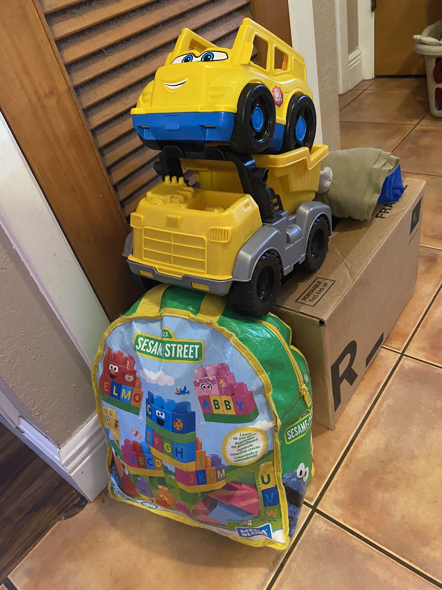 LIKE NEW. MEGA BLOCKS SESAME STREET TOYS AND TWO CARS LIKE NEW AND I HAVE MORE KIDS TIYS AND CLOTHS🥰