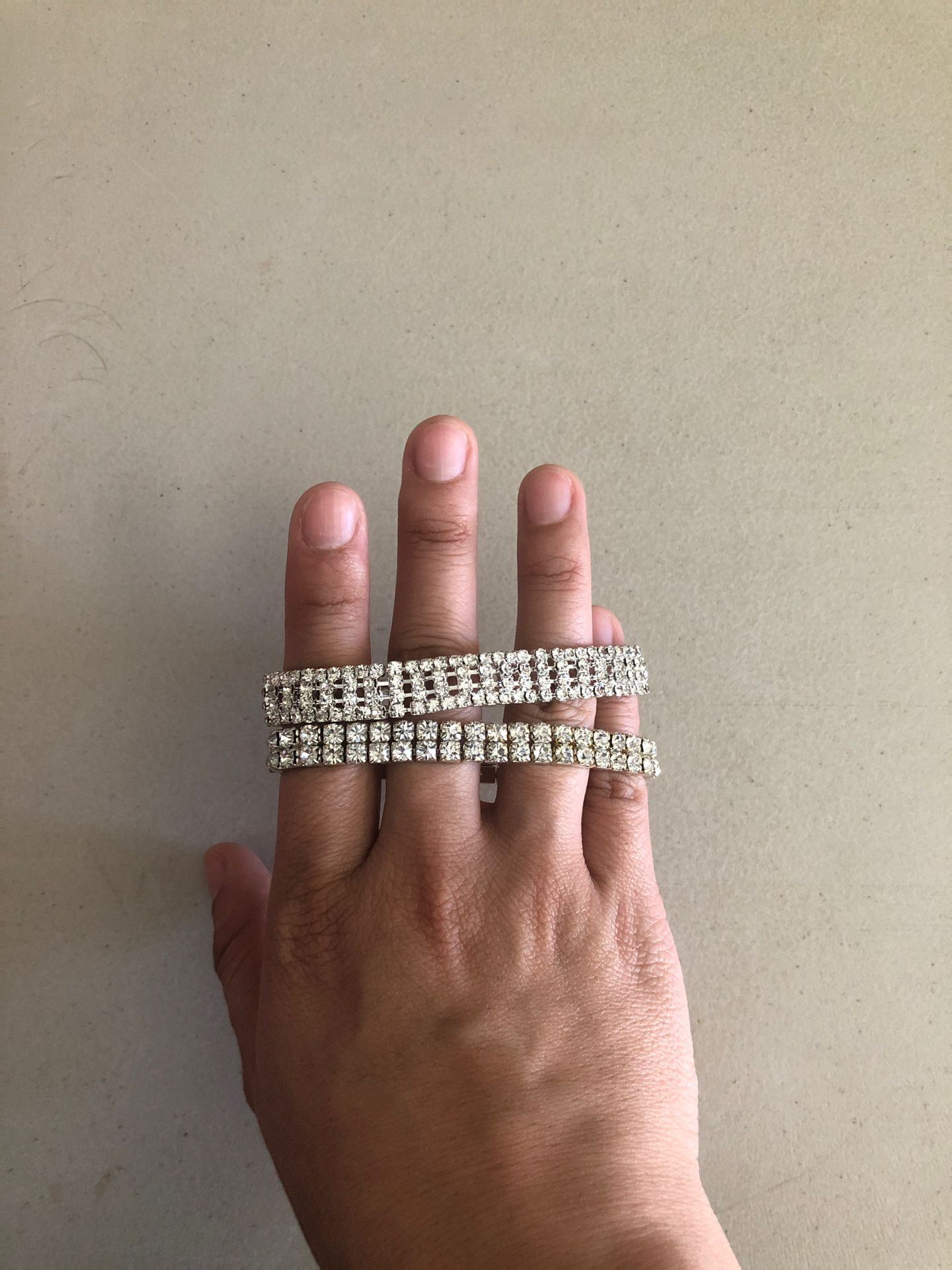 Used once. Two Cz stone bracelets. One stretches and the other has a clasp.