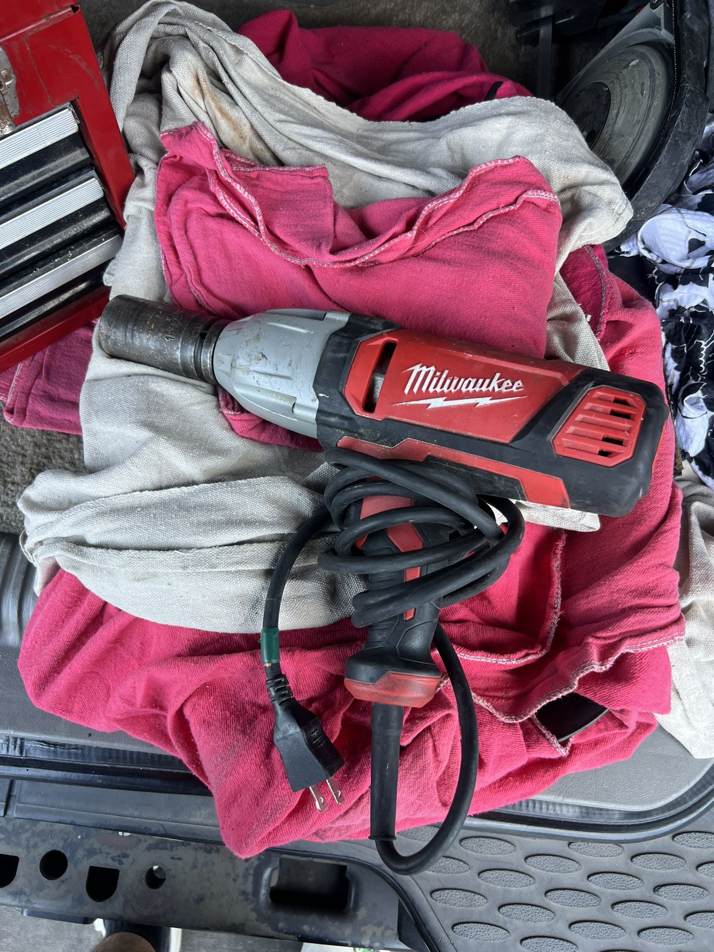 Corded Milwaukee impact , I believe it’s 3/4 or 1 inch , way too big for me to use on what I do daily , can meet or drop off