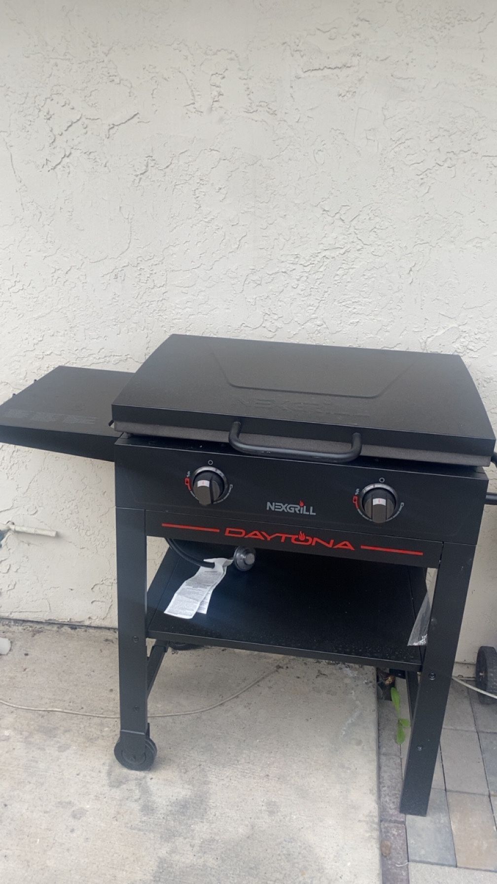 Daytona 2-Burner Propane Gas Grill 28 in. Flat Top Griddle in Black with Lid