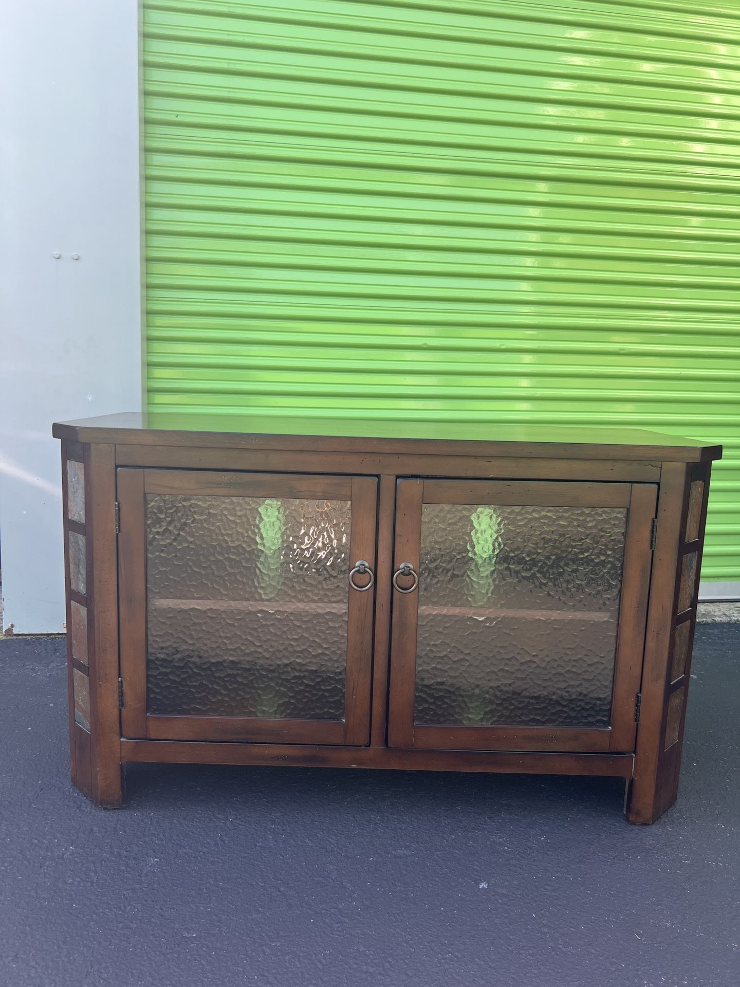 Beautiful tv stand with glass doors 45 1/2 L 18 1/2 W 27 H
