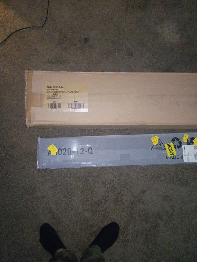 Queen 5" Green Tea memory foam mattress and bed frame, will deliver for free!