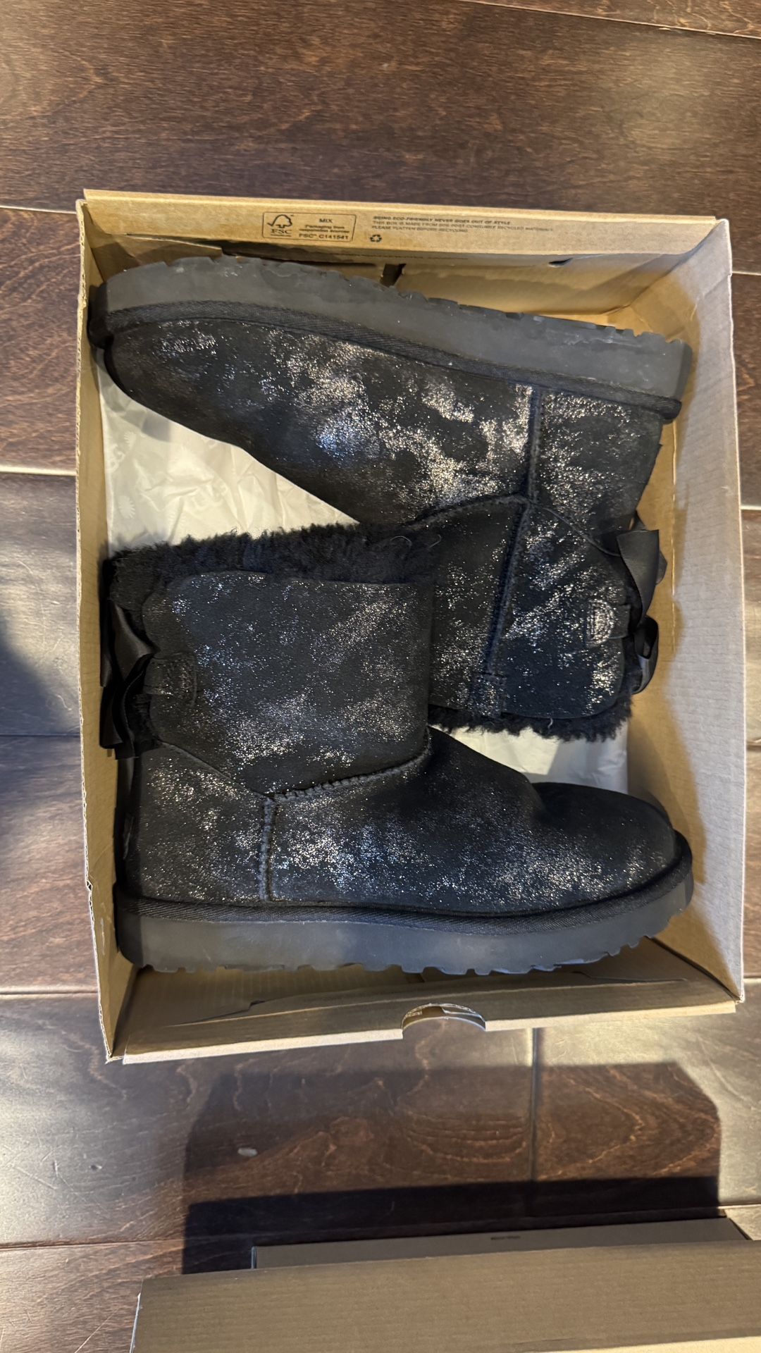 Ugg Women's Mini Bailey Bow Glimmer Faux Fur Lined Boots Size 6