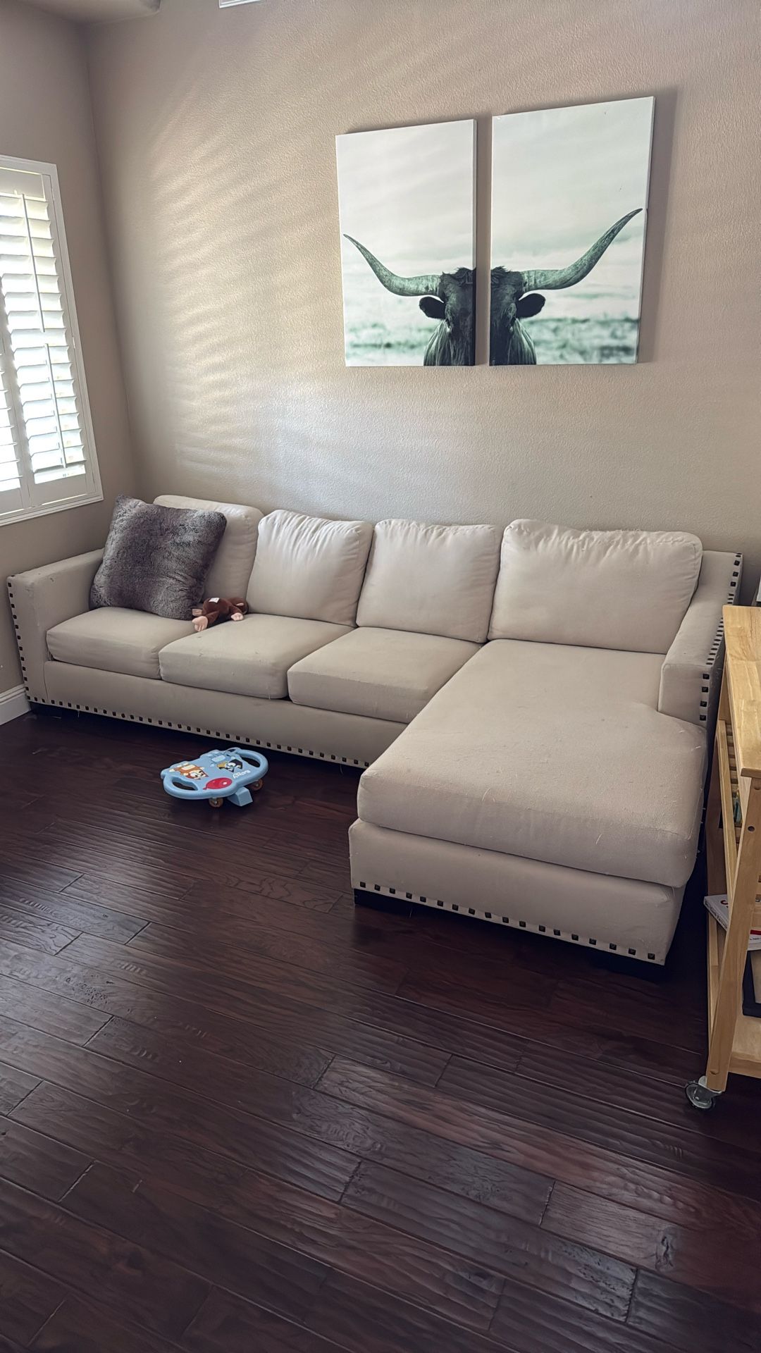 Couch is in great shape. We have had it for many years so there are a few blemishes and minor defects but overall a great couch. Simply downgrading to a smaller couch for this room so we don’t want anymore. Pick up only, first come first serve