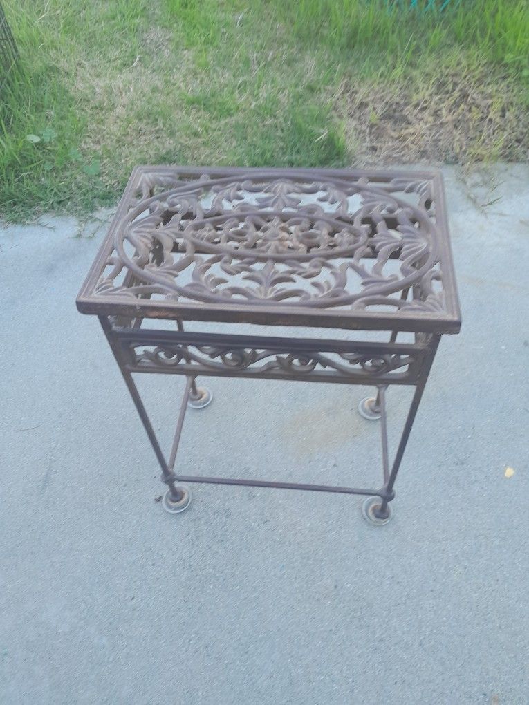 Antique 1940s End Table Cast Iron Art Deco Beauty