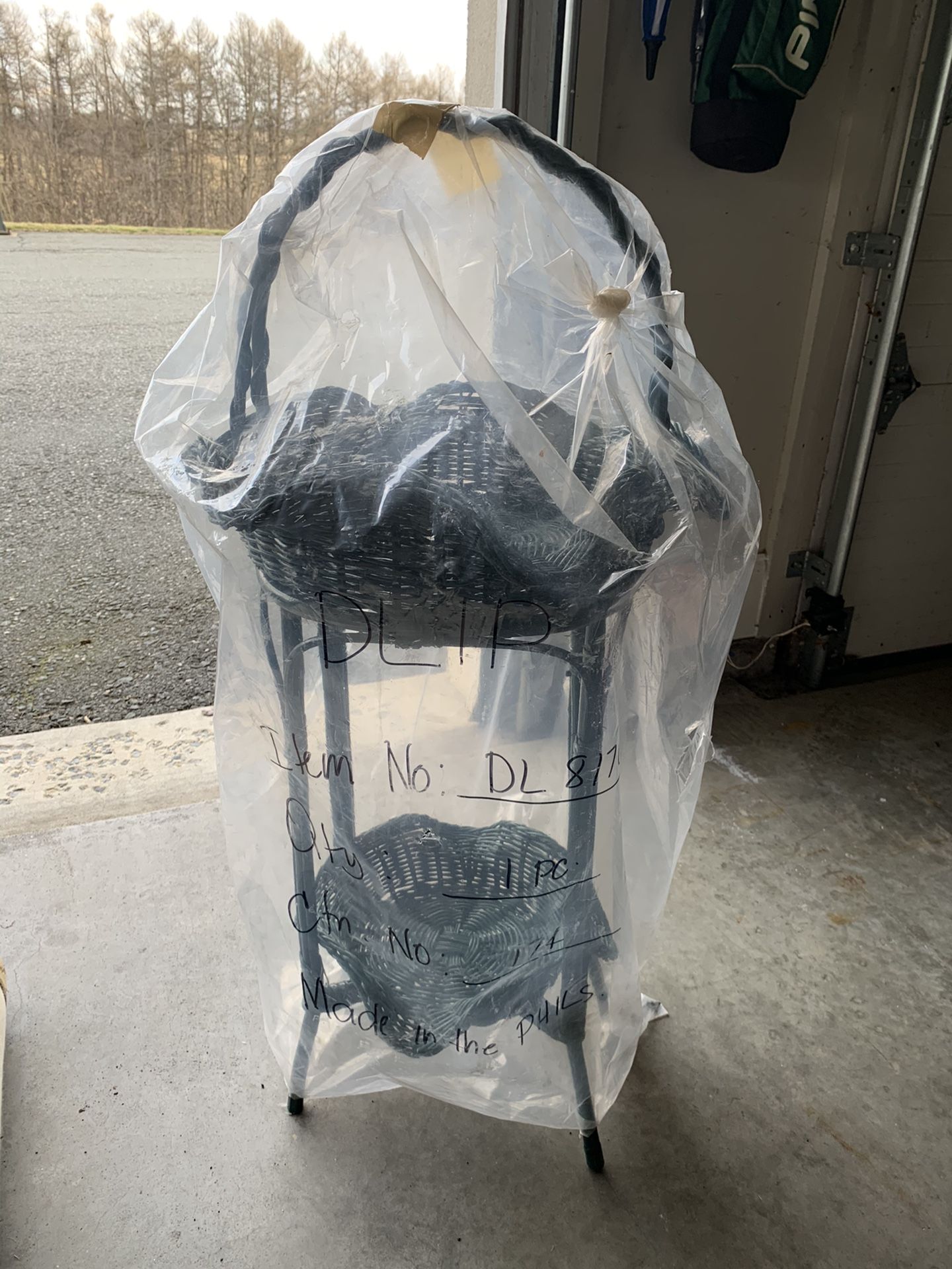 Never used, very sturdy. Green. Or get crafty and spray paint it black or cream for a modern look