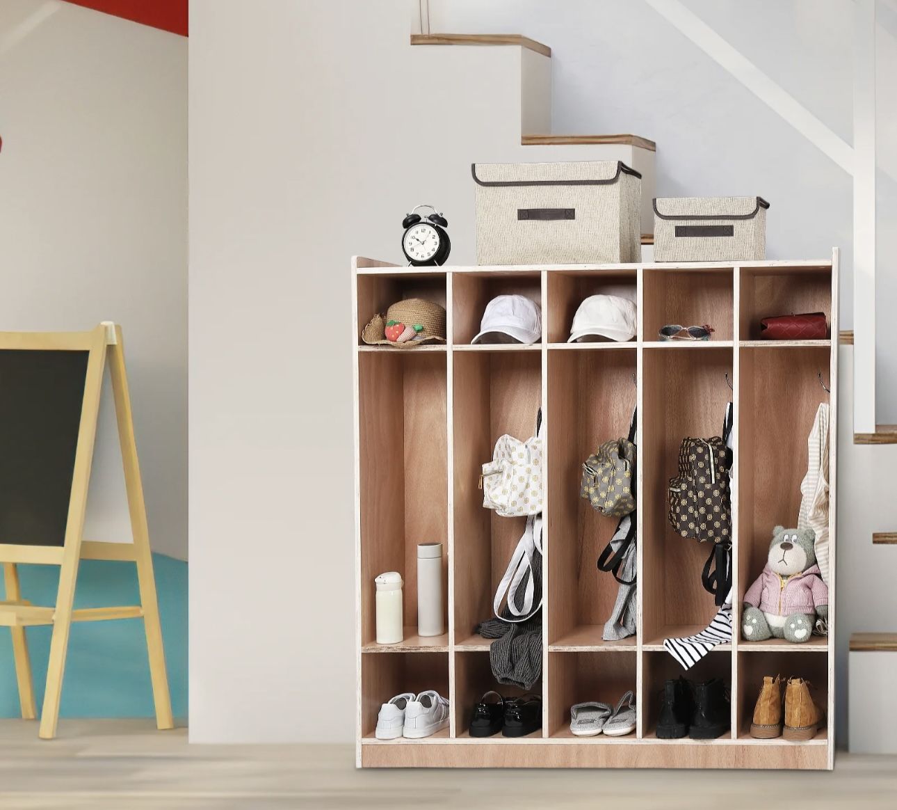 Classroom Coat Locker with 5-Section and 10 Cubbies for Classrooms, Daycare Cubby with 4 Casters, 5 Hooks and 2 Storage Boxes, for Home, School, Kindergarten. Adequate Storage: Five open coat bays and ten cubbies neatly organize jackets, lunch boxes, school supplies, and more in playrooms, utility rooms, or classrooms. • Brand New, still in the box, ready for pickup • CASH ONLY • Assembly available upon request for additional price • ALL SALES ARE FINAL