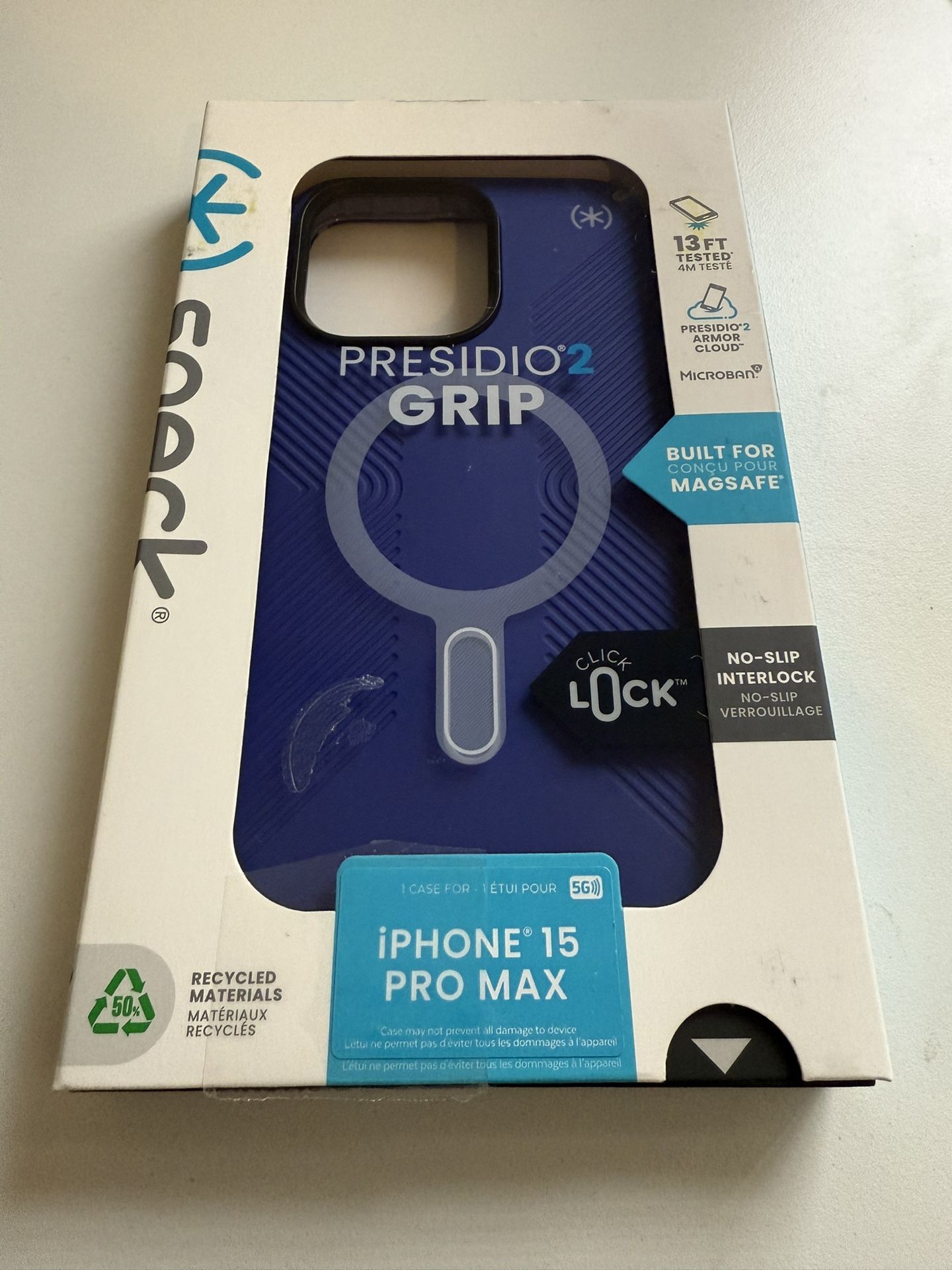Hello everyone. Today you’re looking at a brand new iPhone 15 Pro Max Speck Mag Safe case. Please contact me if you have any questions. Thank you.