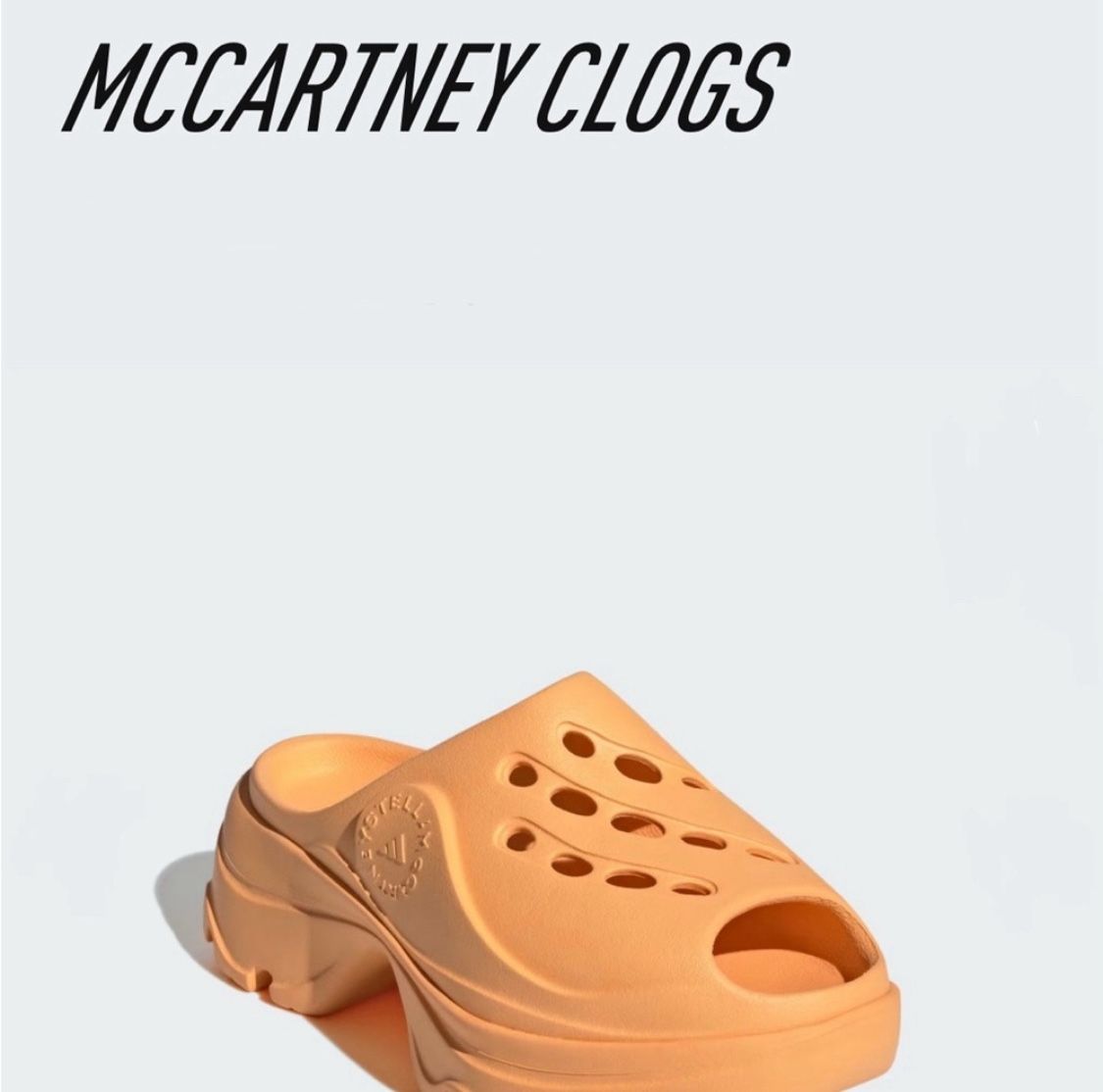 Adidas Stella Maccartney Unisex Platform Orange Clogs with a unique design. Perfect for casual wear or an athletic look. I have them in almost all colors and I love them. I just change my mind on this one because I don’t use orange at all. Selling them for way less of what I bought them for so please le be reasonable when offering. Just tried them once around the house, no box. Super lightweight, love the platform height. Just so you know, this specific size comes oversized. At first, I my first pair at my regular size 7 and it fitted like a size 9. I sold those and from there I bought them on UK size 5 to fit as a size 7. This are true size to US size 7. However, please see insoles length to compare and estimate your fitting please. I am a regular size 37 or 7 and this fits perfect.