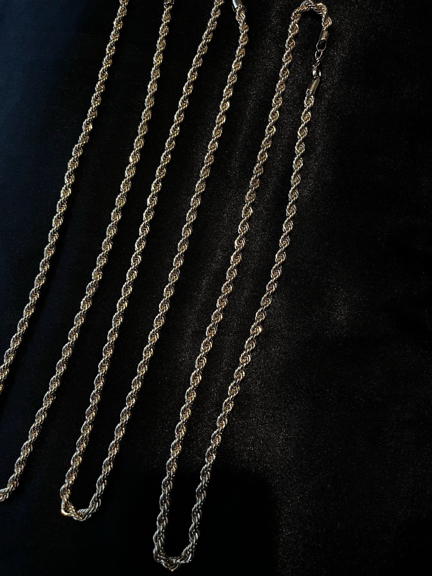 5mm rope chain with 8 layers of premium gold coating built to last, meaning sweat and everyday wear won’t easily mess up the shine. It’s nickel free and hypoallergenic so no irritation either. This is the chain you can actually wear daily and not worry about it for a good price.