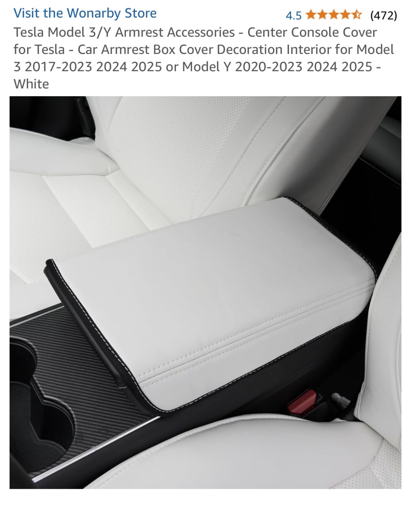 Brand New Tesla Model 3/Y Armrest Accessories Center Console Cover for Tesla Color: White Car Armrest Box Cover Decoration Interior for Model 3 Years: 2017-2023, 2024, 2025 or Model Y Years: 2020-2023, 2024, 2025