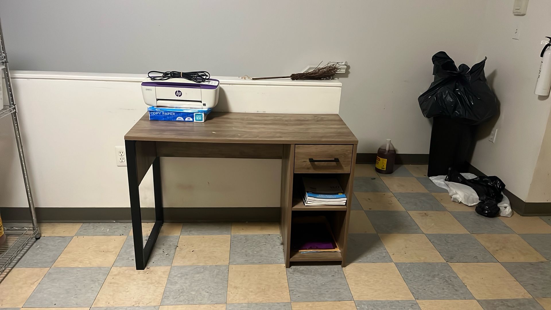 I am selling a fairly used office desk very easy to disassemble & resemble Allen wrench included with a working HP PRINTER, PAPER, NOTEBOOKS, FILING FOLDERS This office desk was bought from crate and barrel