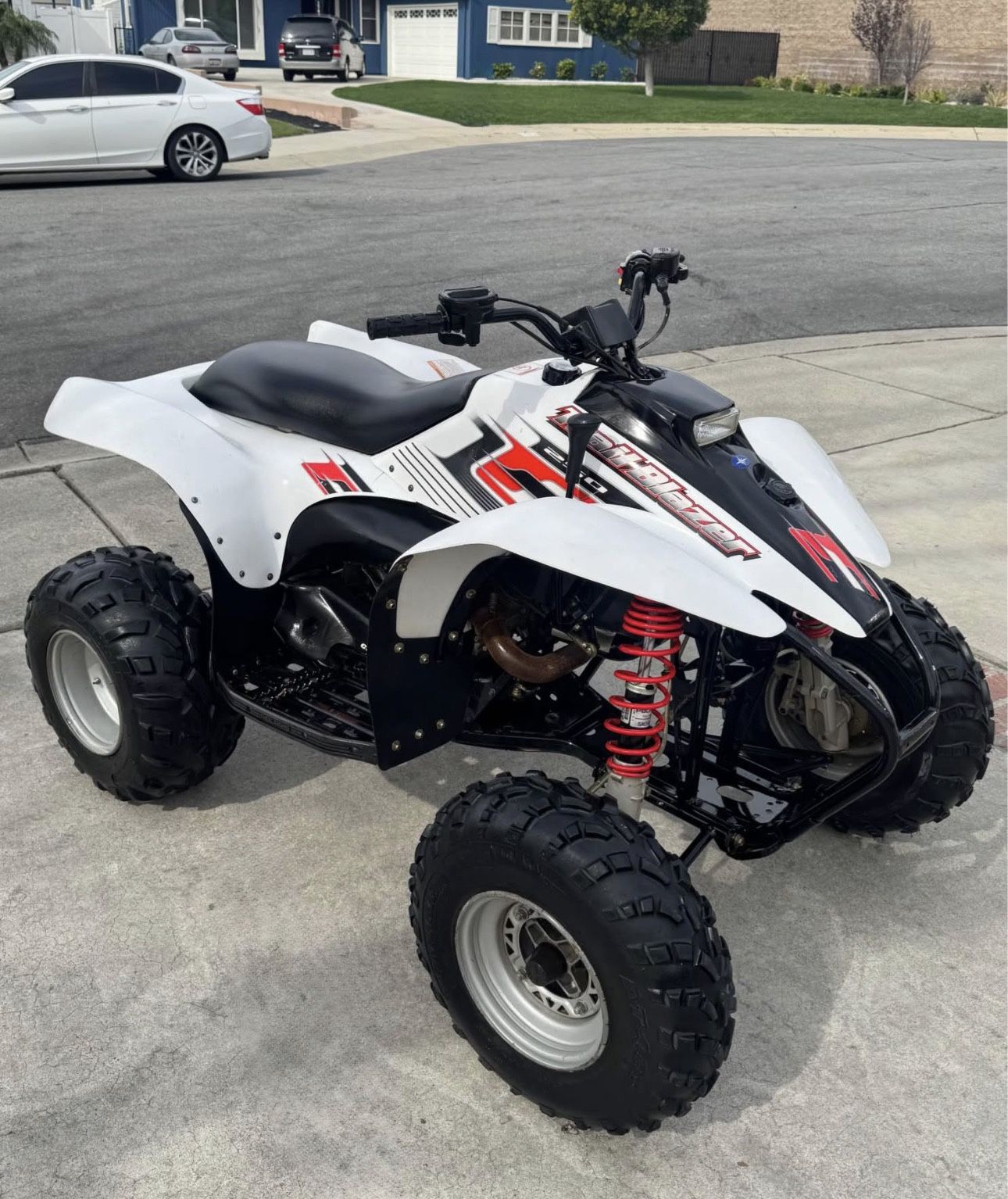 Hello, I am selling my 2006 Polaris Trailblazer 250 quad. Pink slip on hand, it is green sticker. Starts right up and runs great. Fully automatic with reverse. Electric start and pull start. New battery. Asking $2400. Located in Ontario, ca. Hablo espanol. Thank you.