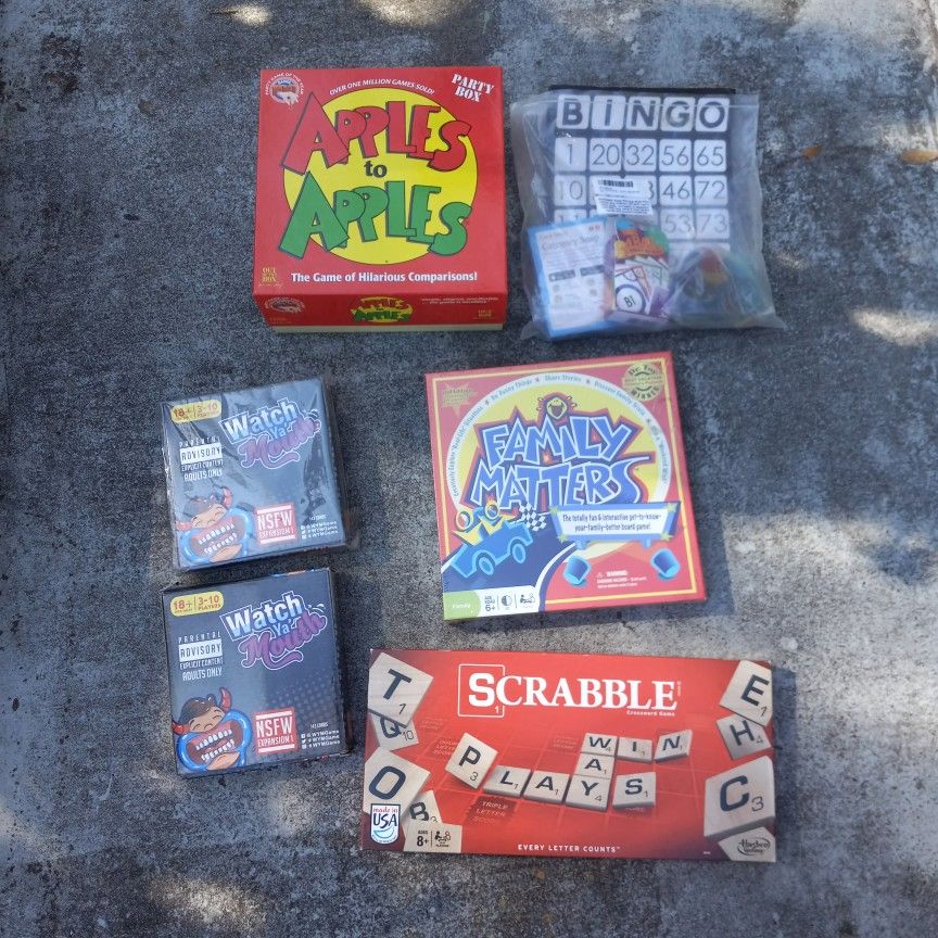 Adult Family Game Lot: Scrabble, Apples To Apples & More
