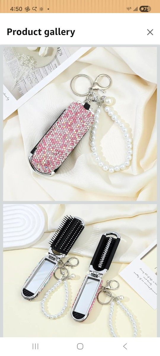 Bling Bling folding brush with mirror. Multiple uses such as a keyring, purse charm and has a white bead wristlet to hang off wrist $8 each. While Supplies LAST