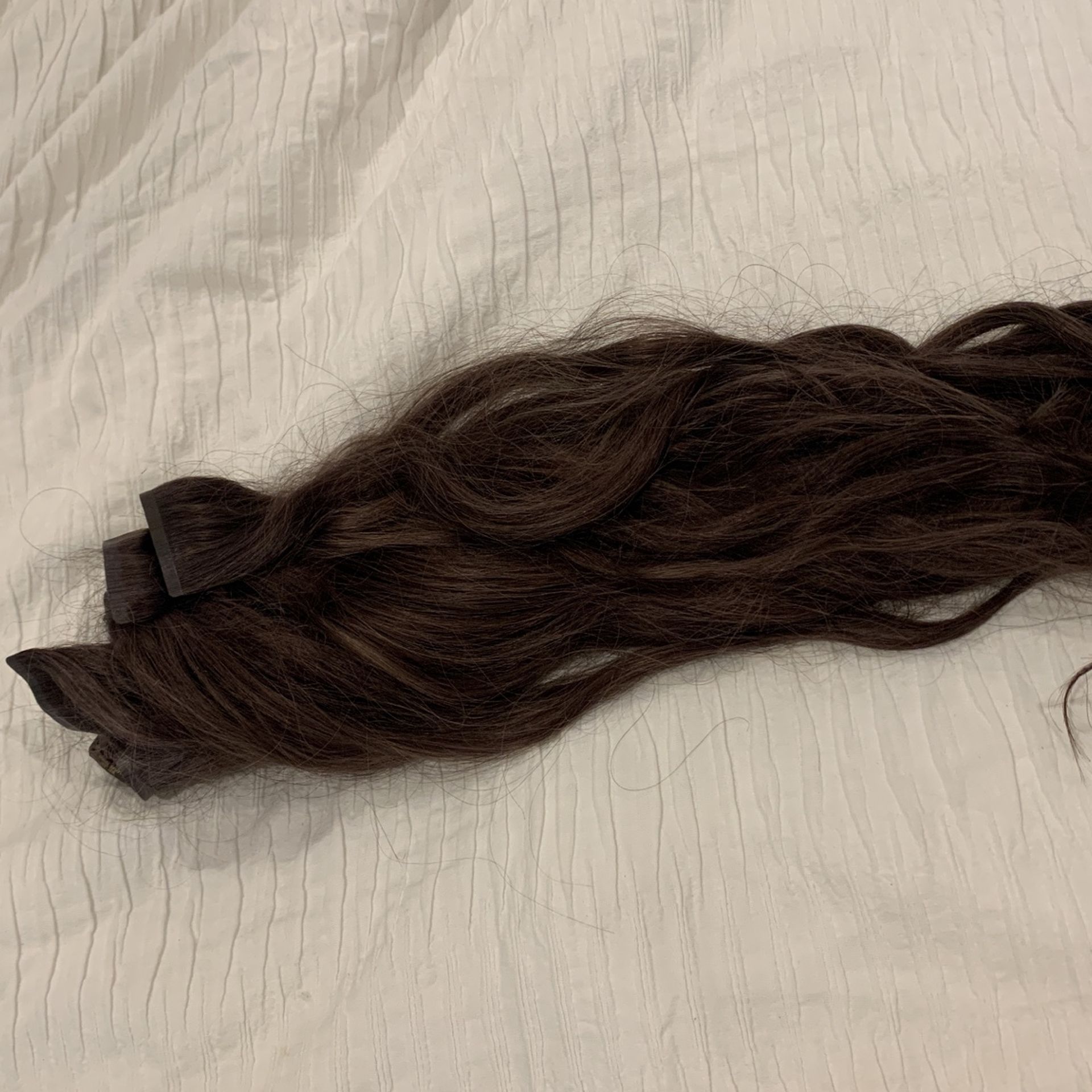 Beautiful silk hair extensions , comes with attached clips. 5 pieces, each with four clips . 22 inches long . Only used once