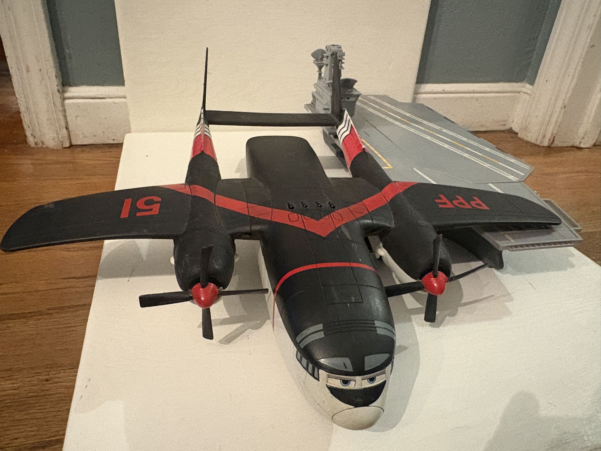 Two large toys. Good for kids, good for collectors. Both are of vehicles from Disney Pixar’s Planes franchise. One is a Fire & Rescue plane, the other is an aircraft carrier. The plane has all parts, and is in good shape. The aircraft carrier is in decent shape, however is missing a few parts.