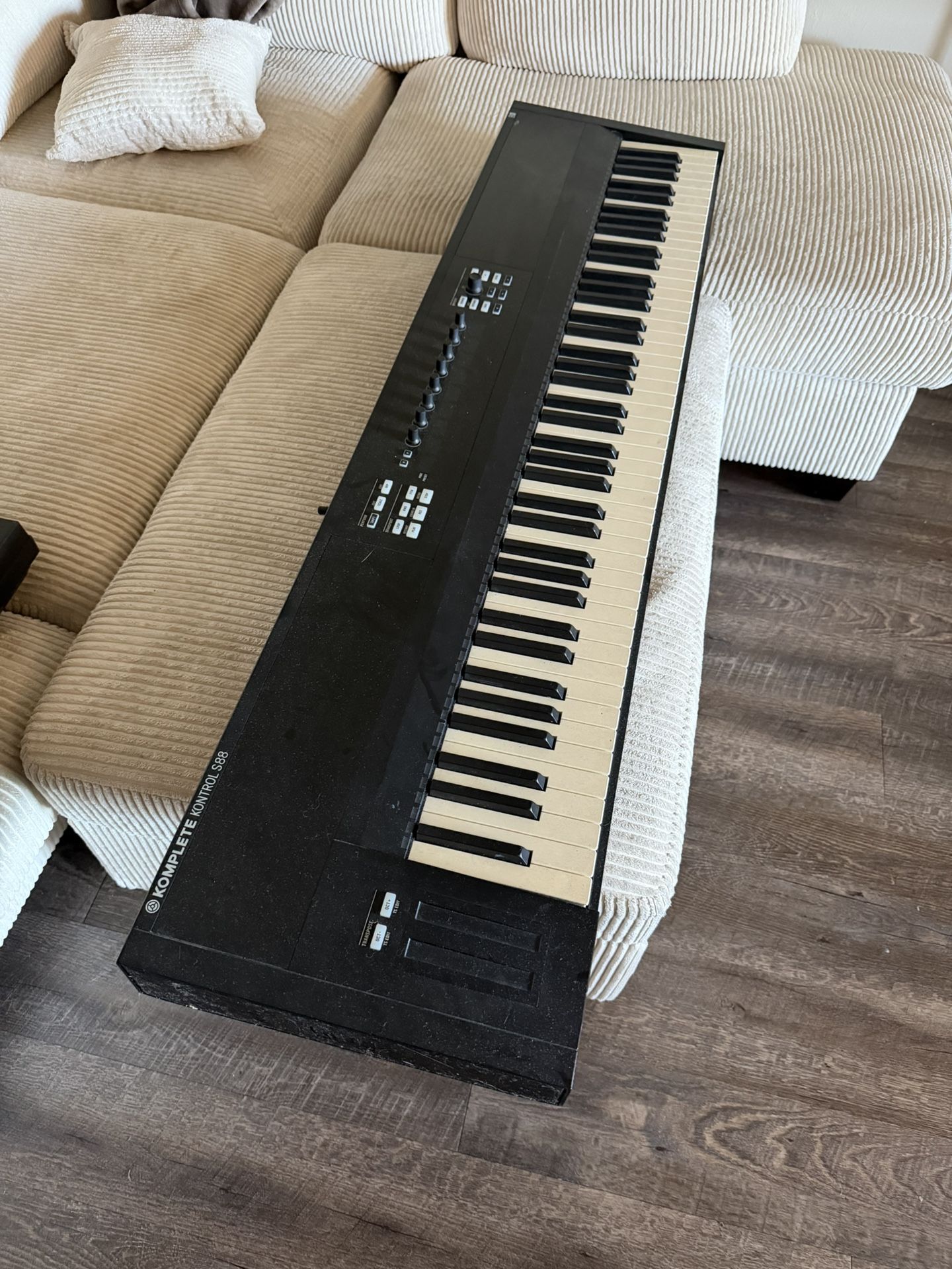 πΉ For Sale: Native Instruments Komplete Kontrol S88 β 88-Key MIDI Keyboard Condition: Used / Good Fully working β all keys, knobs, wheels, transport, and Komplete navigation respond. Cosmetic wear + dust from studio use (see photos), but nothing affecting playability. π― This is a professional-grade controller: β Fully weighted hammer-action keys β 88-key piano feel β Touch strips instead of pitch/mod wheels β Browser + transport controls β Light Guide compatible (if connected to NI software) β USB/MIDI integration with: β Logic Pro β FL Studio β Ableton β Maschine β Kontakt, Komplete instruments and more. Includes: β’ Keyboard β’ USB cable (if you have it, mention it) β’ Software licenses NOT included (standard when reselling NI gear)