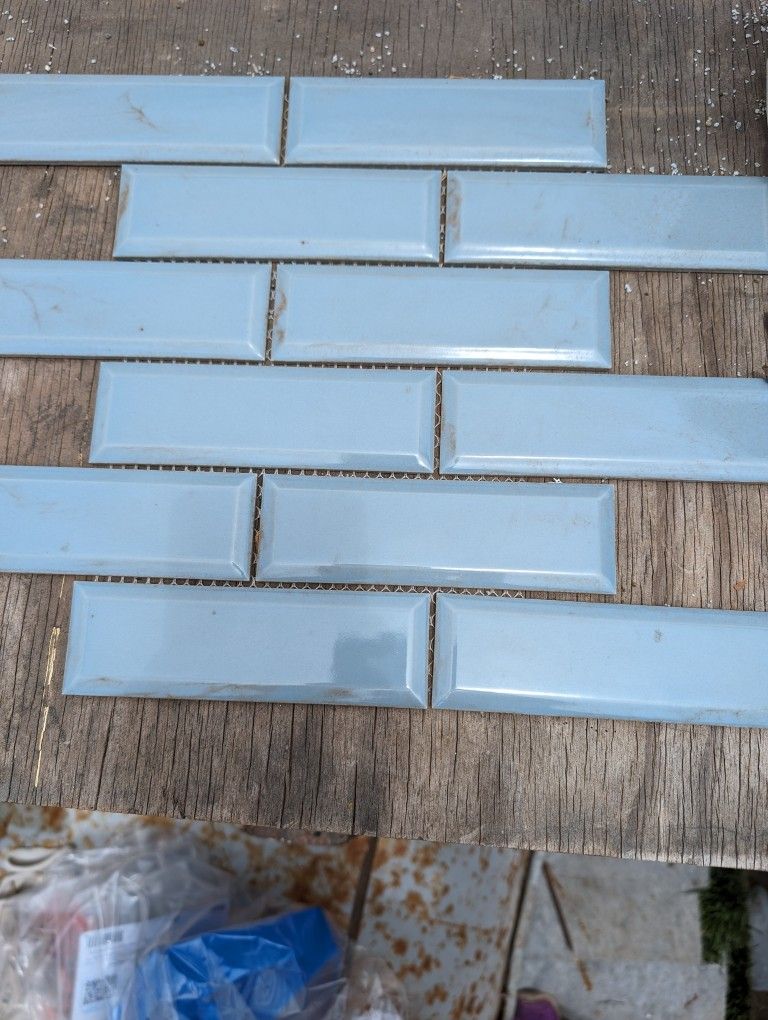 40 pieces available light blue subway tile style sheets. Every 10 pieces = 8.93sqft $7 per sheet Great for accent bathroom wall or backsplash Cash or Venmo only. Buyer must pick up