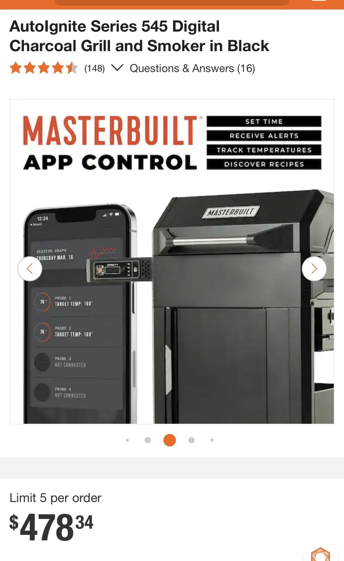 Masterbuilt-Autolgnite Series 545 Digital Charcoal Grill and Smoker in Black