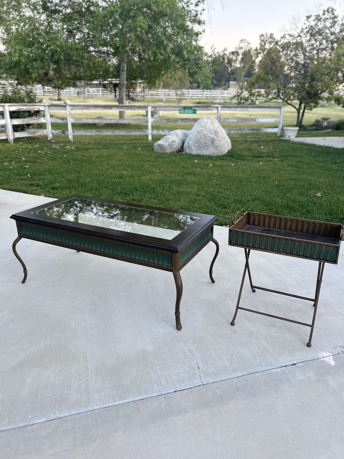 Gorgeous embossed metal coffee table and side table Beautiful color - heavy and well made We are in east Bakersfield