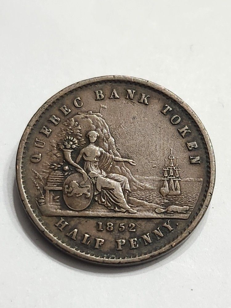 1852 Bank Of Canada Half Penny - Antique Coin